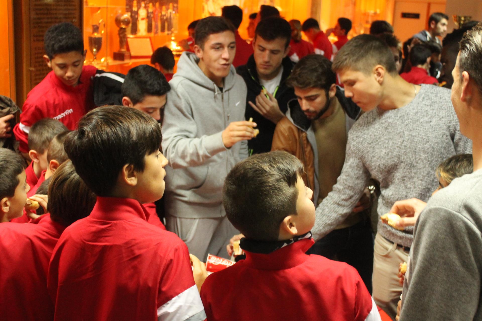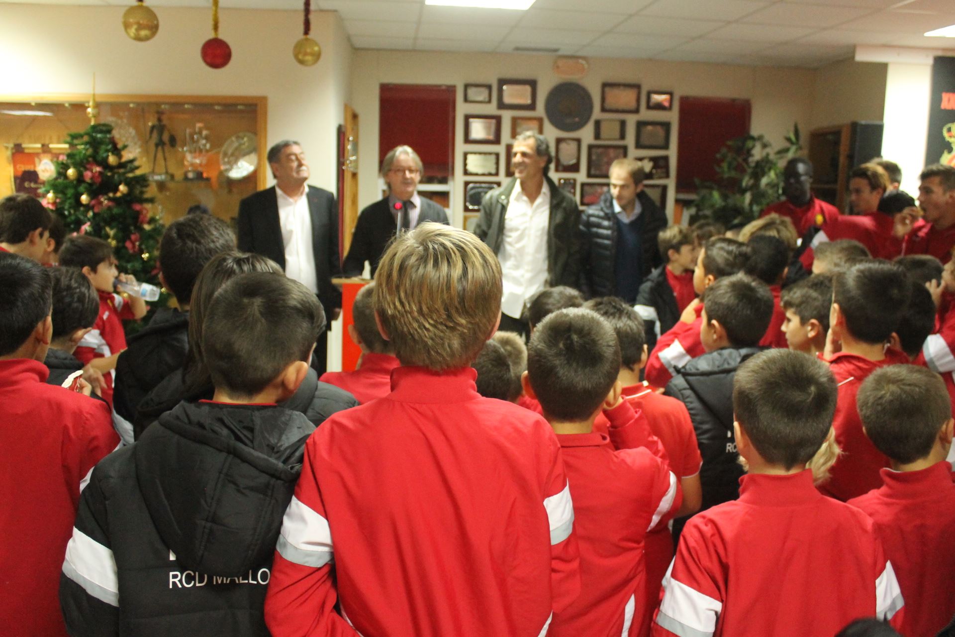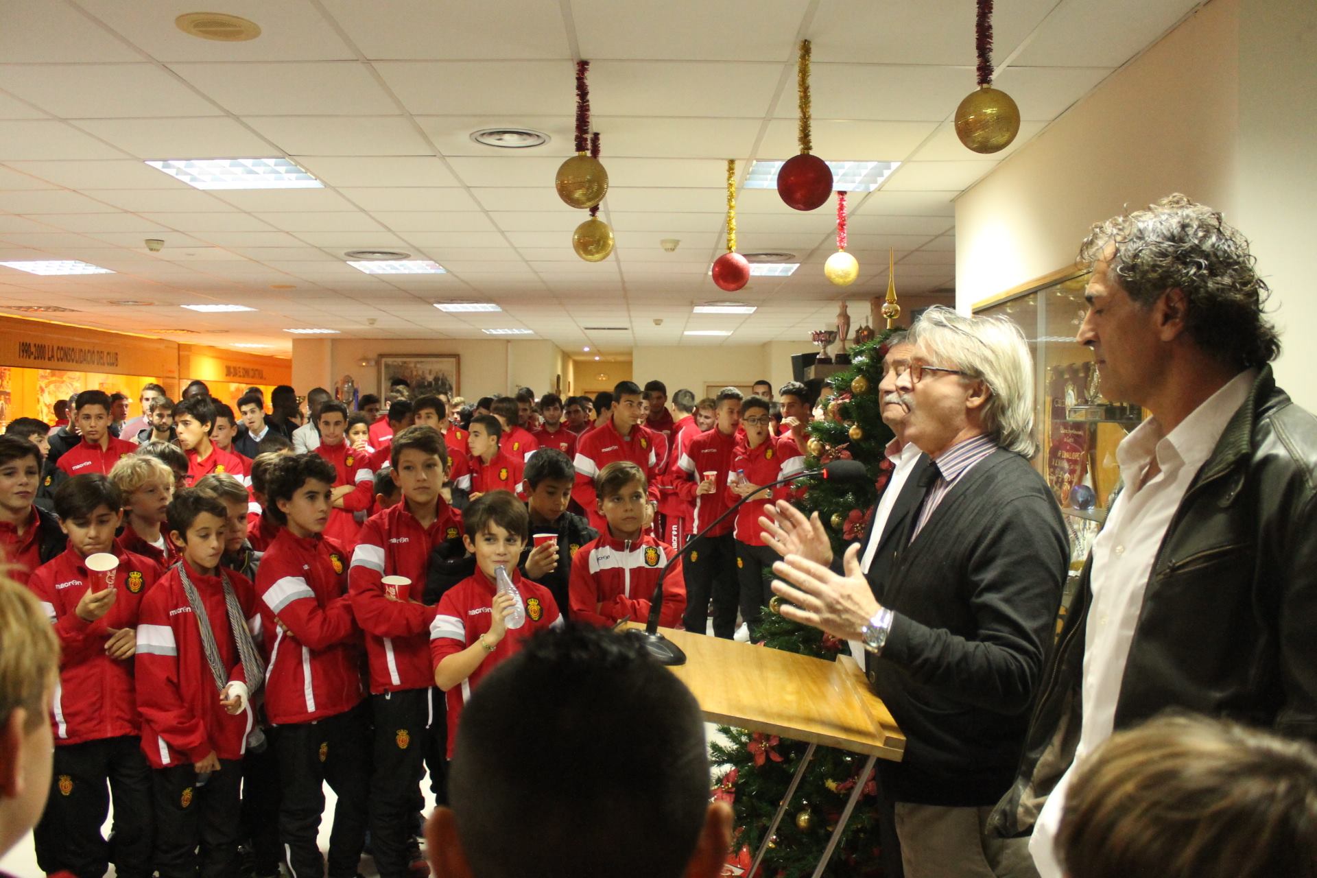 El vicepresidente del Real Mallorca, Monti Galmés, el director deportivo, Miguel Angel Nadal, el presidente del futbol formativo, Paco Galmés y el coordinador de las categorÃas inferiores, Carlos Sureda, han presidido la tradicional merienda de Navidad dedicada a los jugadores del futbol base del club.