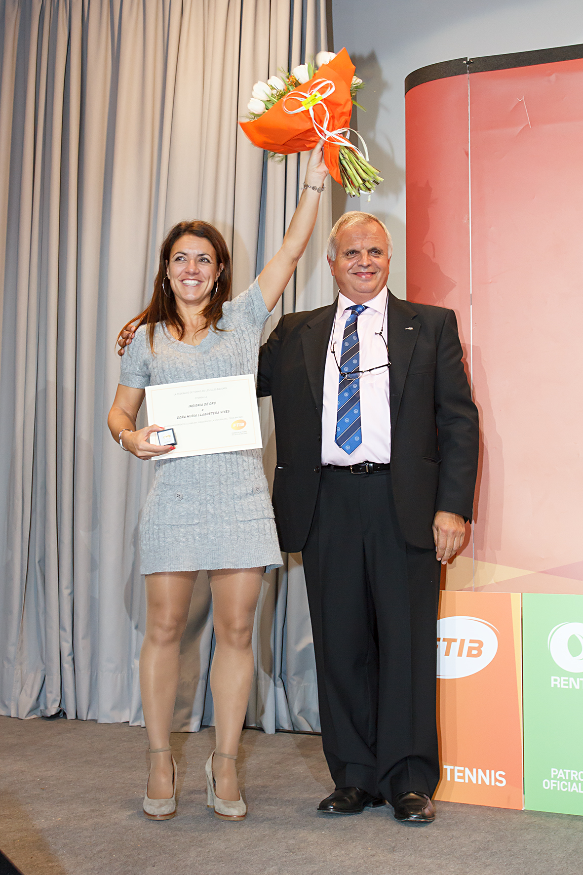 Ayer sábado, una emocionada Nuri recibió de manos del Presidente Ferragut la insignia de oro, en la Gala del tenis balear 2015 que se celebró es Molí des Comte y en la que se entregaron los trofeos a los ganadores de los campeonatos de Mallorca y Baleares y a todos los jugadores que han destacado durante este año.