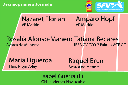 La jugadora de Avarca de Menorca, Raquel Brun se lleva el MVP de la última jornada de la primera vuelta de Superliga femenina. El encuentro más disputado de la fecha 11 de la SFV enfrentó a la escuadra menorquina contra VP Madrid, un espectacular choque por la zona media-baja de la tabla que se resolvió en un igualadÃsimo tie-break después de casi dos horas y media de partido. La victoria balear se produjo gracias a la aportación de Raquel Brun.Â