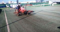 El treball consisteix a descompactar, extreure i recebar el cautxú que hi ha sota de la gespa, de manera que, després d’aquest procés, s’aconsegueixen recuperar uns 4-5 cm de gespa en perfecte estat (gairebé nou) i que estava ocult sota aquest cautxú compactat.