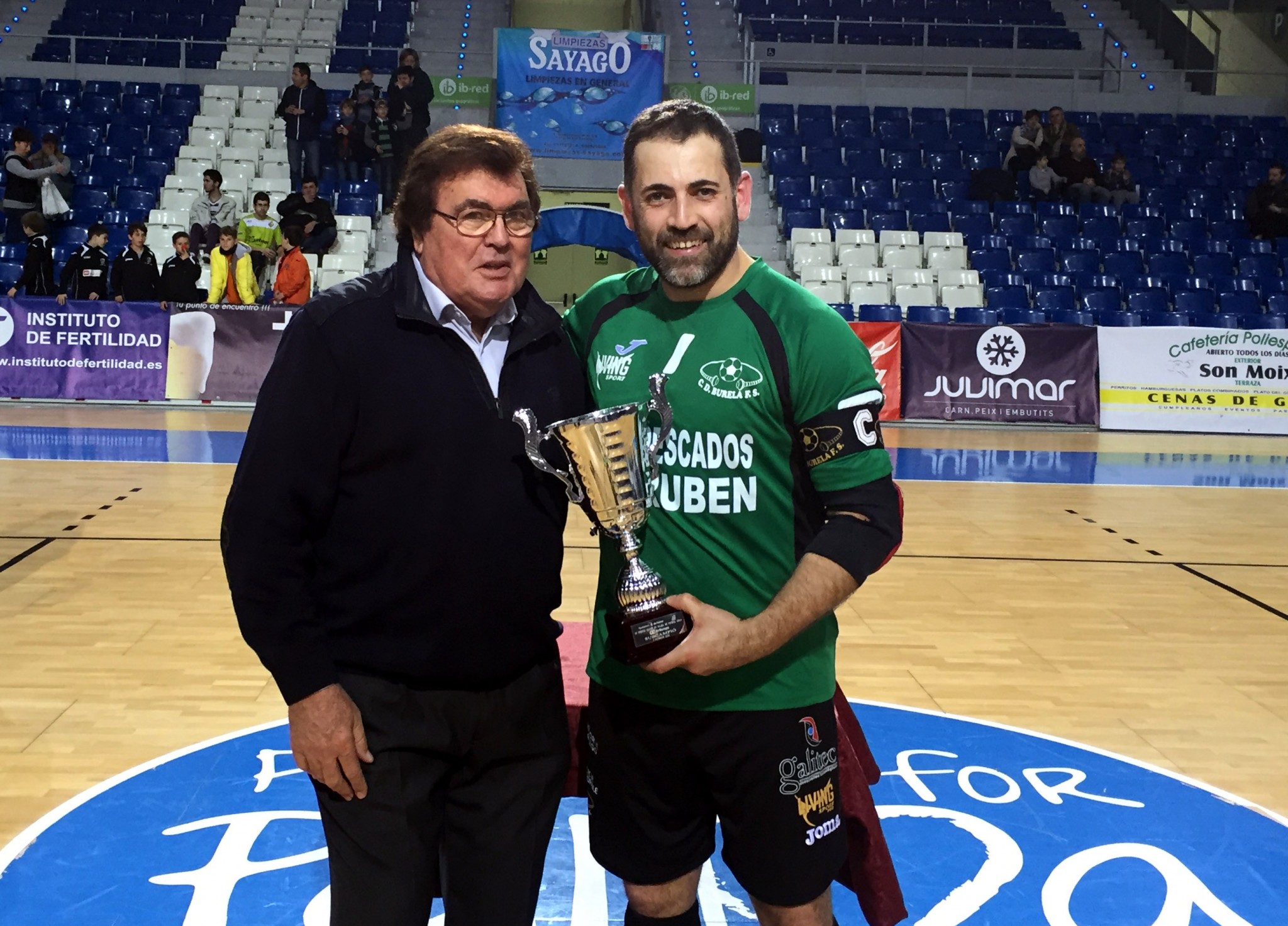 Miquel Bestard y Edu, del Burela, con el trofeo de segundo clasificado
