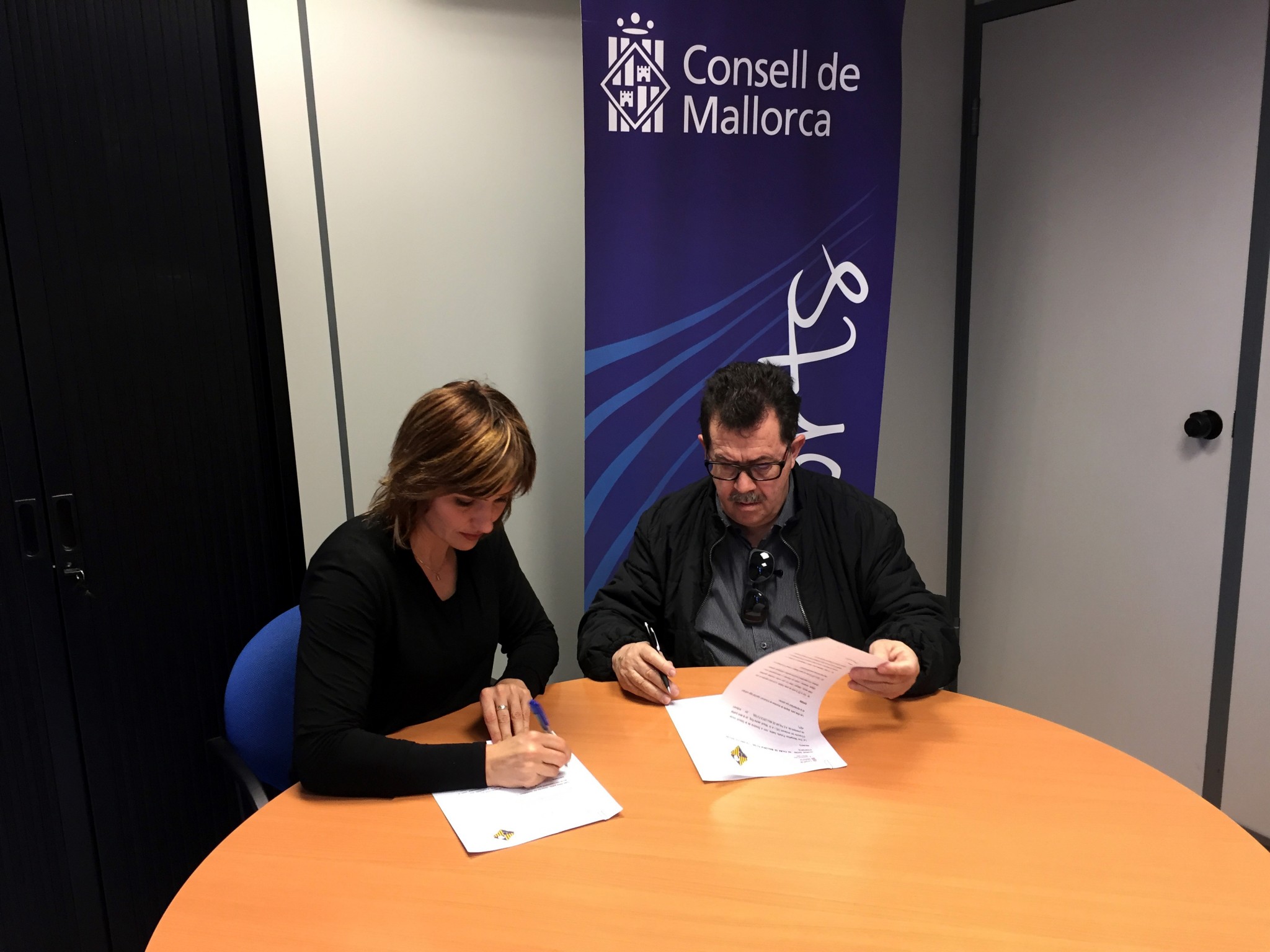 Margalida Portells y Miquel Jaume firman el convenio en la sede del Consell de Mallorca