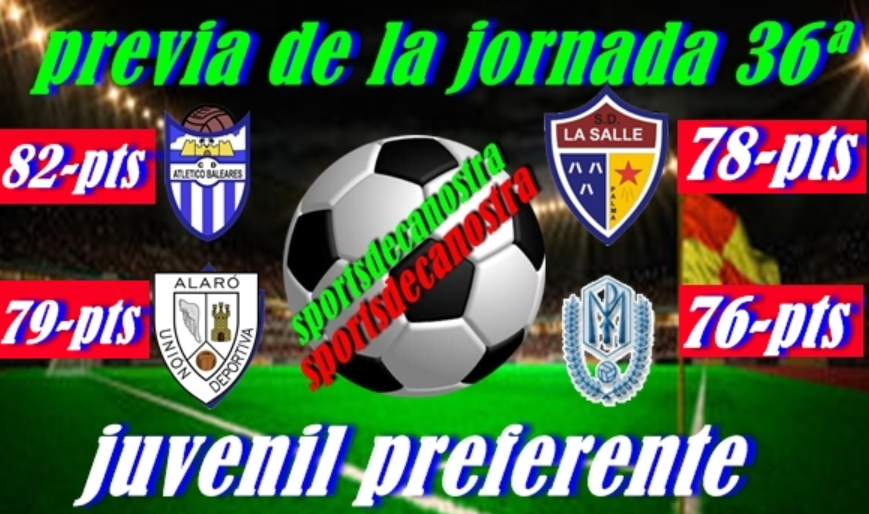 el  ATº -BALEARES  juega su partido donde no debe tener problemas para conseguir la victoria ya que se enfrenta al CD.SAN FRANCISCO equipo que lucha por no descender y pondrá las cosas difíciles en su campo pero los resultados no les acompañan. por su parte el CD.LA SALLE segundo clasificado juega su partido contra el CD SEVERENSE que a priori es el partido de la jornada ya que los locales son muy difíciles de ganar en su feudo, los visitantes no pueden tropezar otra vez si no dejaran demasiada distancia para lograr el ascenso. por detrás sus perseguidores empatados a puntos el CD.ALARO se la juega contra el CD.PORTOCRISTO equipo descendido y que será un puro tramite para los visitantes consiguiendo los tres puntos salvo sorpresa, por ultimo el PATRONATO equipo que la semana pasada pincho en el partido estrella de la jornada y que dejo tres puntos de oro y ahora se aleja del líder aun asi están todavía con opciones pero ya mas retrasados, esta semana tiene un desplazamiento muy difícil en S’HORTA donde será clave el ganar ya que el rival es muy competitivo en su feudo.. esperamos no defrauden los partidos y sea una jornada limpia y bonita de futbol que va siendo hora.