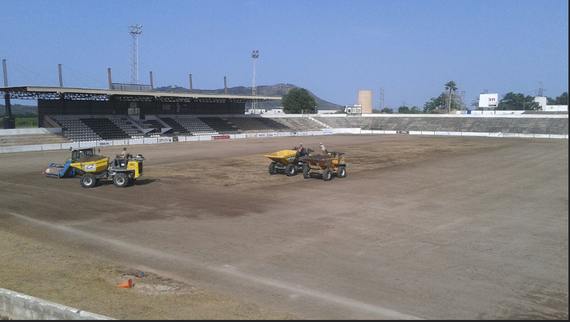 Hace unos quince días que comenzaron las labores de reforma de la totalidad del terreno de juego del “Estadi Nou Camp” de Inca quitando varias capas de tierra en mal estado, añadiendo tierra de calidad, nivelando el terreno y dejándolo en perfectas condiciones para que el jueves y viernes pasado se sembraran las semillas.