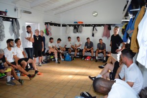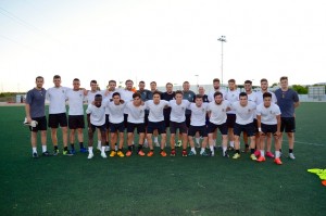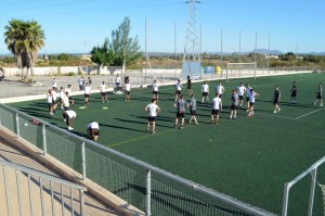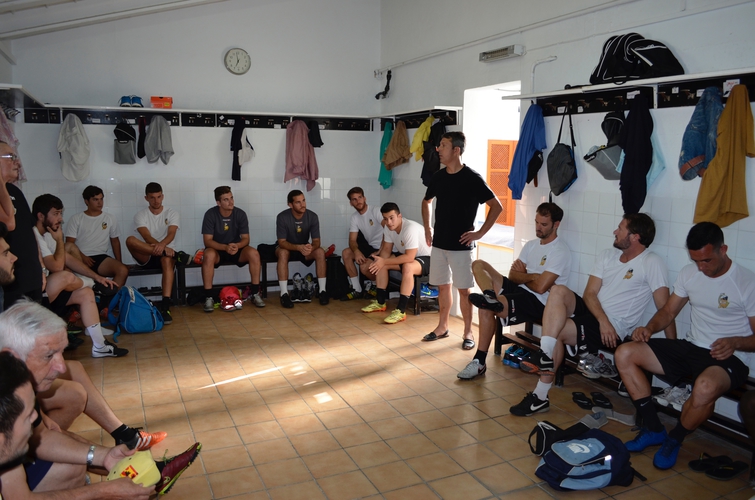 Mucho calor e intensidad en una sesión en la que la directiva del Club quiso dar la bienvenida a los jugadores y cuerpo técnico y explicarles así el proyecto que se está generando esta temporada. Para esta directiva es fundamental que la primera plantilla esté en permanente contacto con el fútbol base y con el equipo de tercera regional y este año se ha propuesto que así sea realmente. También los jugadores conocieron los avances del “Nou Camp” y pudieron ver cómo avanzan los trabajos de resiembra que, por cierto, está a punto de comenzar.