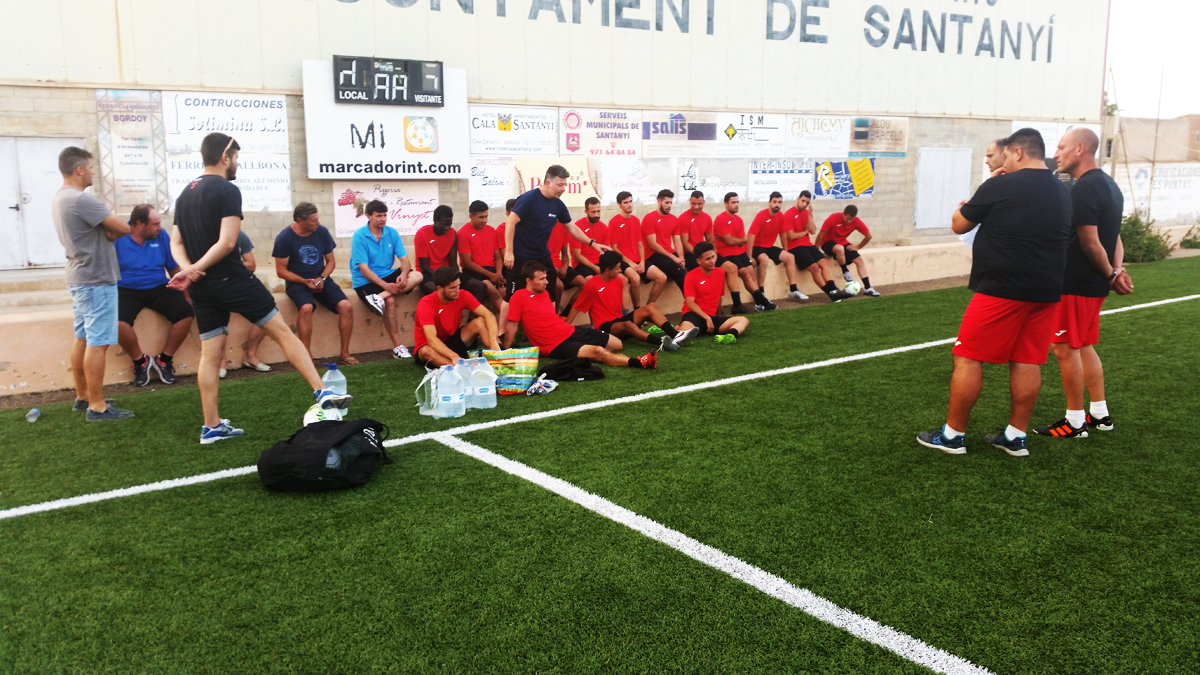 El lloc va ser el Camp Municipal de SantanyĂ, ja que degut a les obres amb motiu del canvi de gespa del Municipal de Campos, aquests primers entrenaments s’han de realitzar fora de Campos. D’aquĂ volem agrair la col·laboraciĂł tant de l’Ajuntament de SantanyĂ com del CE SantanyĂ.