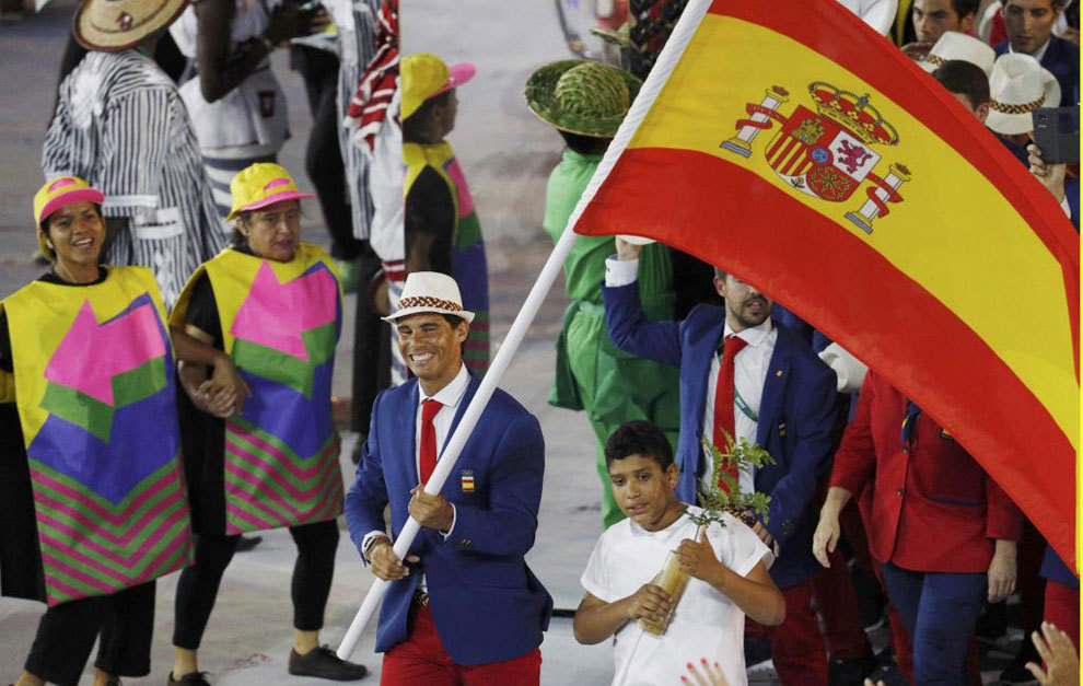 Un Rafael Nadal eufórico, emocionado y sonriente encabezó con una vistosa bandera rojigualda el desfile de la delegación olÃmpica española en el Estadio de Maracaná, donde quedaron oficialmente inaugurados los Juegos OlÃmpicos de RÃo 2016.