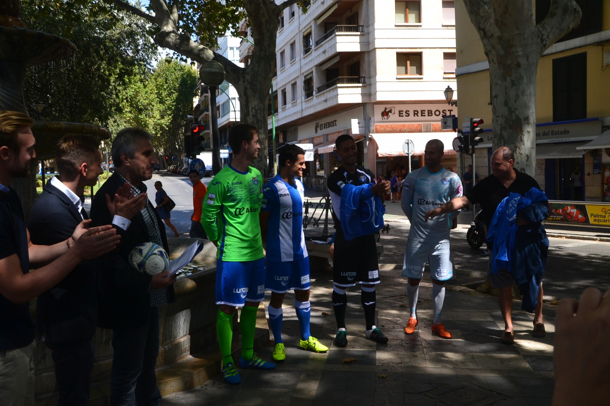 L’Atlètic Balears ha presentat aquest divendres l’ equipament que lluirà la primera plantilla durant l’imminent temporada 2016-2017. En ple centre de Palma, devora la font de La Rambla, quatre jugadors de l’equip que prepara l’alemany Christian Ziege (Oinatz Aulestia, Francesc Fullana, Carl Klaus i Malik Fathi) han mostrat les samarretes de la temporada a la qual es celebrará el 75 aniversari del club.