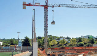 La obra que se está llevando a cabo en un solar pegado al campo de fútbol es una promoción de diez dúplex de dos y tres dormitorios con garaje individual.
