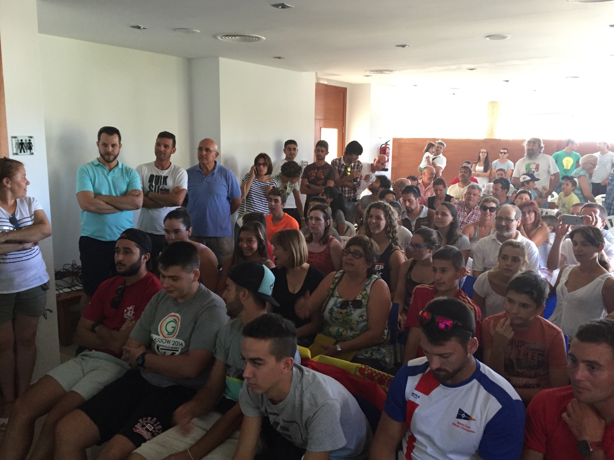La sede social del Reial Club Nà utic Portopetro se quedó pequeña para albergar el centenar de simpatizantes y amigos de Marcus Cooper Walz. Nada más salir en la pantalla gigante el piragüista de Cala d’Or sonó la primera gran ovación de la tarde que se fue replicando cada vez que Marcus salÃa en la pantalla. Explotando de felicidad al acabar tercero y clasificado para las semifinales.
