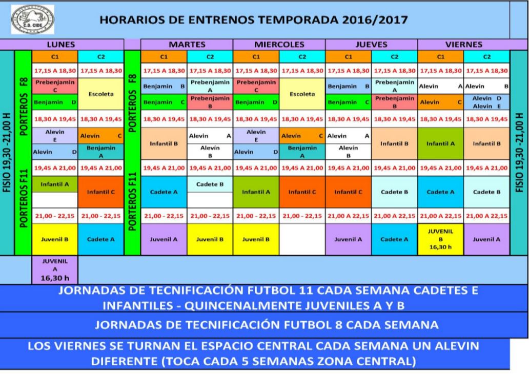CIDEEl C.D. Cide y siguiendo con su plan de transparencia para esta temporada ha dado a conocer los horarios de todos los equipos del club.