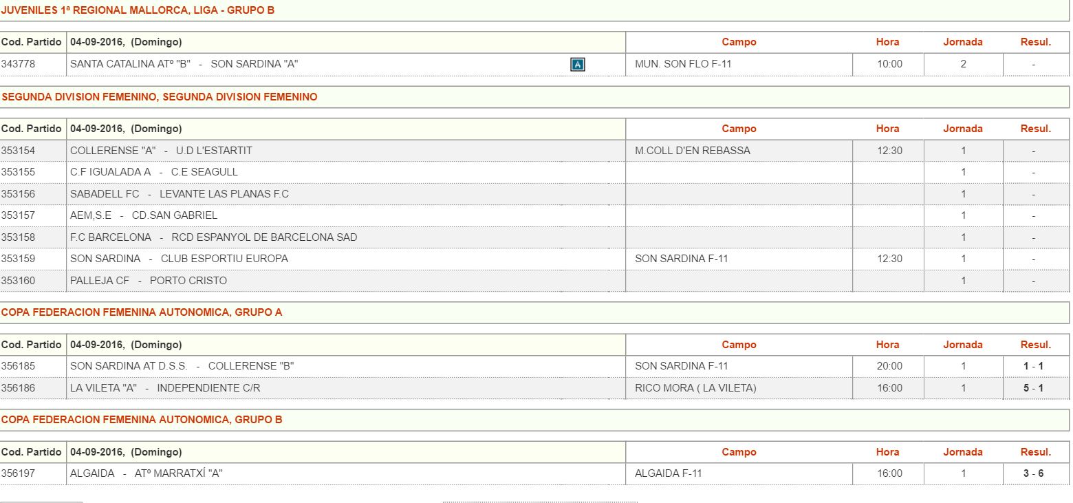 Estos son todos los resultados de los partidos que se han jugado este Domingo todos ellos de de CompeticiĂłn Oficial