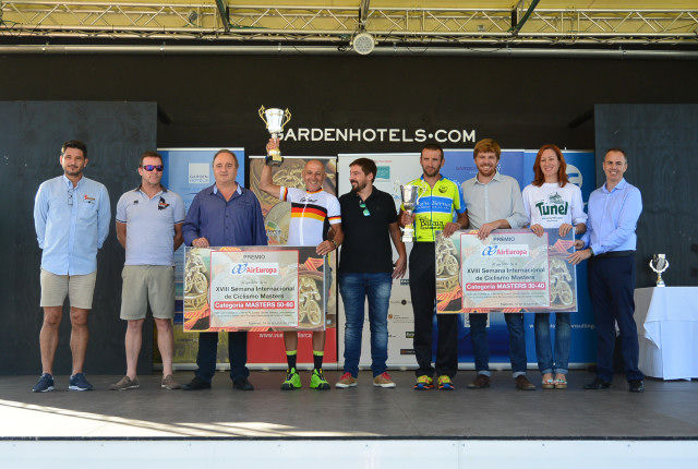 Este domingo la cita será en la Playa de Palma. La salida y llegada de las cuatro carreras de la Copa de Europa de Masters serán en primera lÃnea, frente al Pabisa Beach Club (Balneario 4 – 5). La novedad de este año es que todas las salidas de las pruebas serán neutralizadas y el circuito oficial se ha reducido a 8,2 km. A las 9 horas, los ciclistas de las categorÃas Master 50 y 55 se enfrentarán a 7 vueltas al circuito, completando un total de 59,6 km. A las 10:50 horas, turno para los más jóvenes de la prueba (Master 30 -35): 10 vueltas y 84,2 km en total. Por la tarde, a las 14:55 horas y a las 16:25 horas, salida de las carreras de las categorÃas Master 60 – 65, con un recorrido de 51,4 km(6 vueltas) y Master 40 – 45, con 76 km y 9 vueltas al circuito. Los ganadores de cada categorÃa recibirán el maillot que les acredita como Campeones de Europa y los tres primeros clasificados, medallas de oro, plata y bronce. El cuarto y quinto clasificado recibirán un diploma acreditativo. Las entregas de premios tendrán lugar al finalizar las dos pruebas de la mañana y las dos pruebas de la tarde, a las 12:50 y a las 18:15 h.