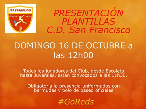 La Junta Directiva del C.D.San Francisco comunica que el Domingo dia 16 de Octubre tendra lugar la presentación de todas las plantillas del club