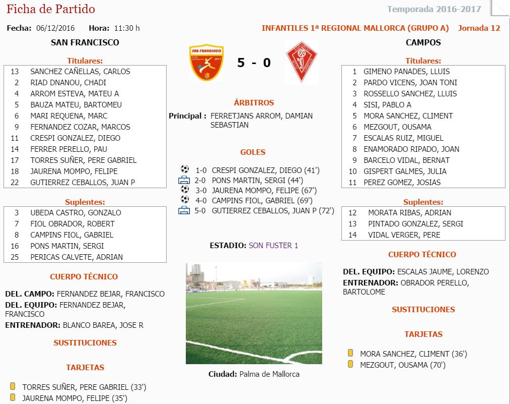 Partido disputado en una fria mañana del Domingo y en el que el equipo local  termino goleando a un voluntarioso campos que aguanto dos partes del partido. A tener en cuenta de que dos de los cinco goles fueron de Penalty