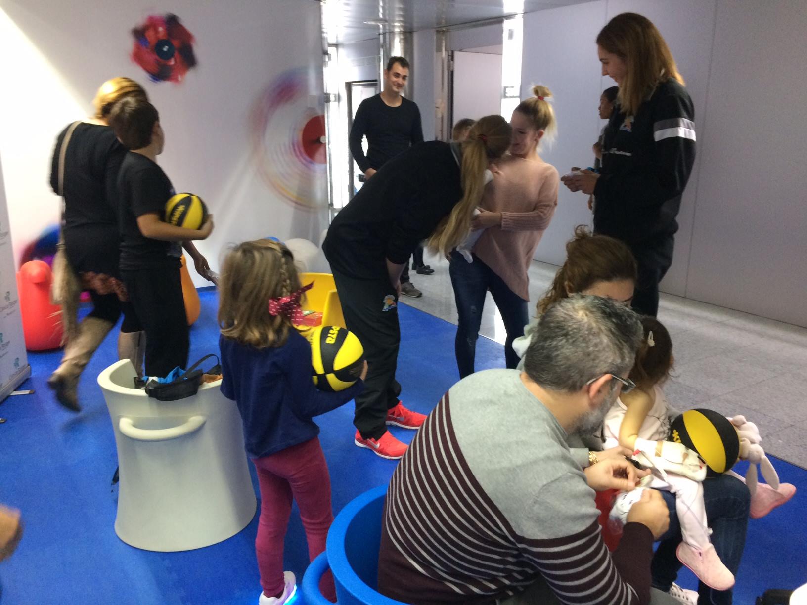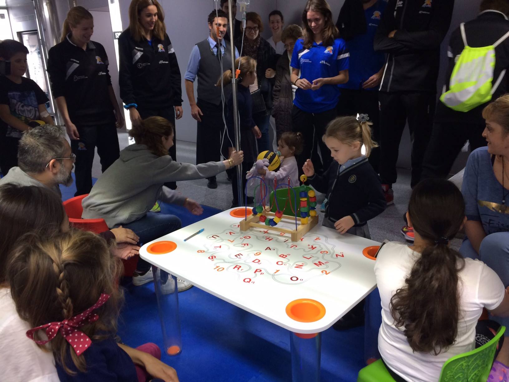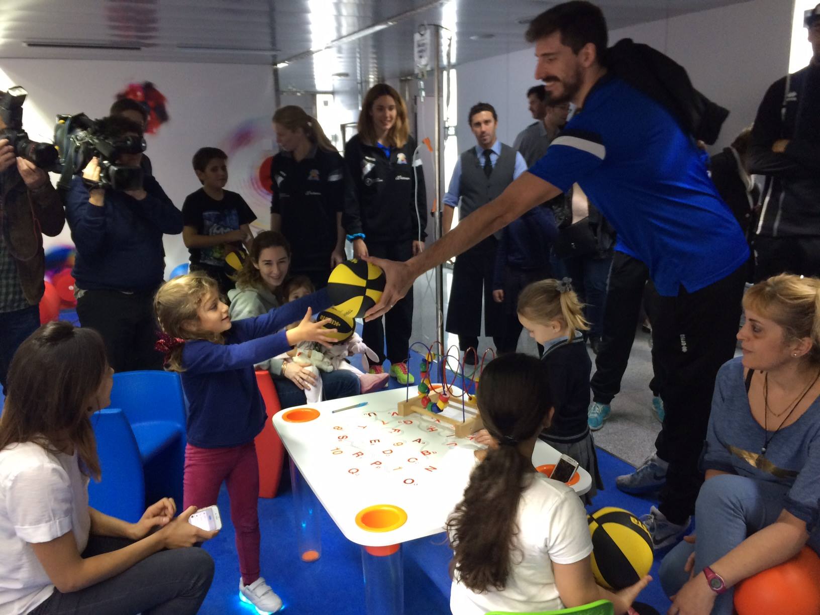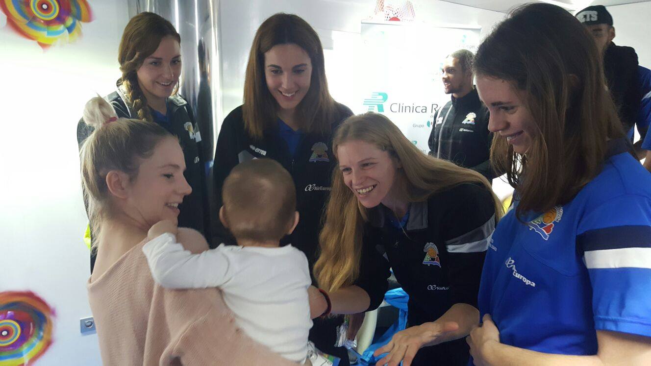 Esta mañana los jugadores del Palma Air Europa y las jugadoras del Instituto de Fertilidad Air Europa han visitado a los niños hospitalizados de la ClÃnica Rotger de Palma y les han hecho entrega de unas pequeñas pelotas de baloncesto para que practiquen cuando se recuperen.