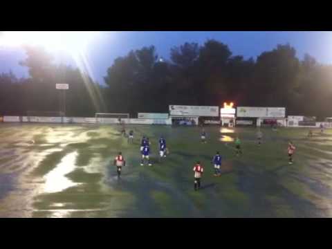Cuando solamente qeudaban siete minutos para el pitido final (parecía que lo peor ya había pasado), David Mas se ha sacado un disparo de la manga a 30 metros del marco que ha significado el empate. El ‘9’ del Mercadal le pegó en carrera, el balón cogió velocidad tras botar dos veces sobre el deslizante césped y Hortal no pudo atajarlo.