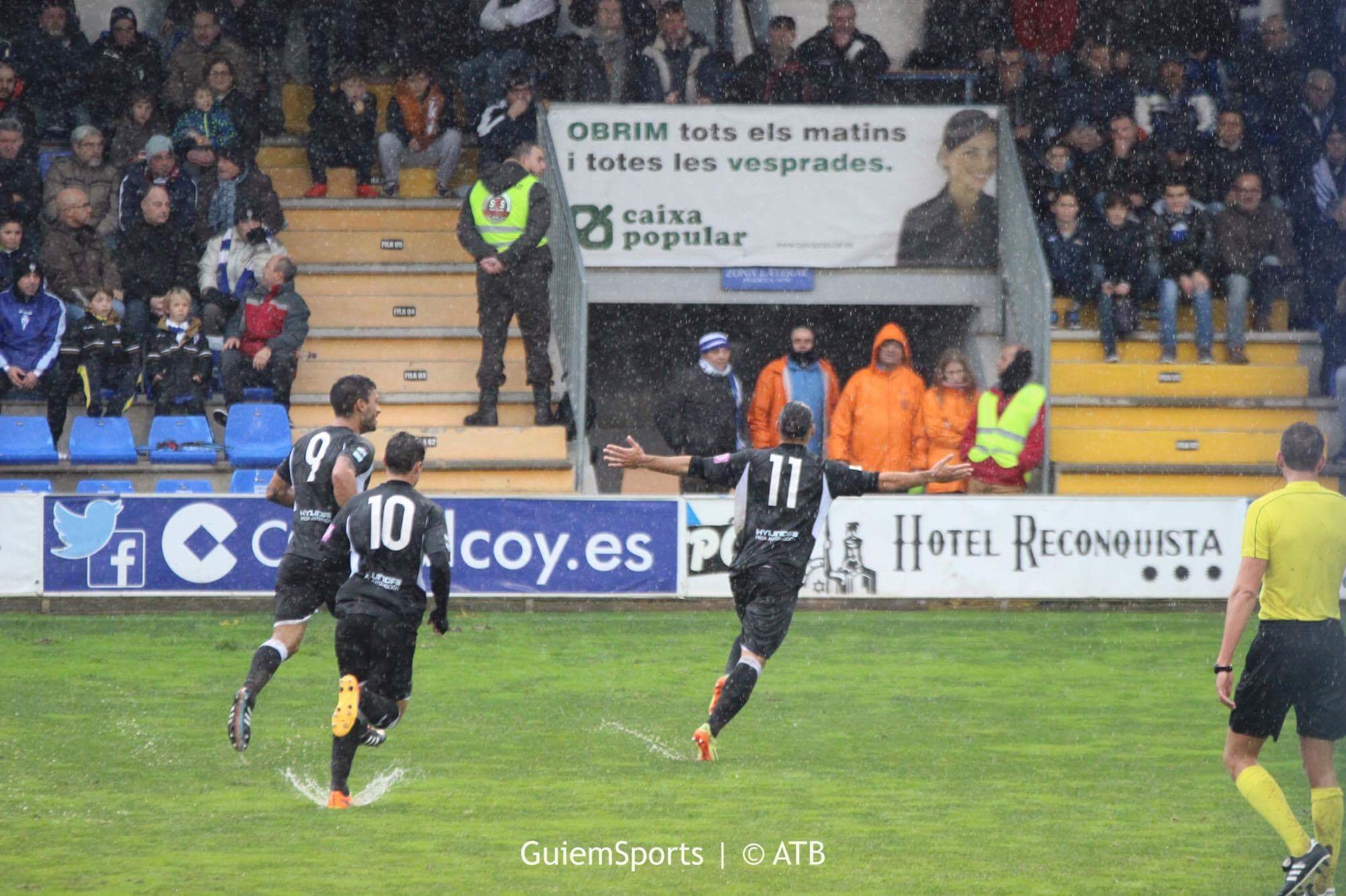 . Era el minuto 31. El 35, una jugada poco deportiva del Alcoyano, que no espera a que la ATB le devuelva la pelota por cortesía, sirve para hacer un contraataque con un disparo alto que hubiera podido suponer el 2-1. Quien también estuvo a punto de marcar fue Xisco Hernández en el minuto 42 con un gran disparo de fuera del área que si no es gol es porque un defensa lo desvía cuando iba dentro de la red, la pelota roza el palo y se fue a córner.