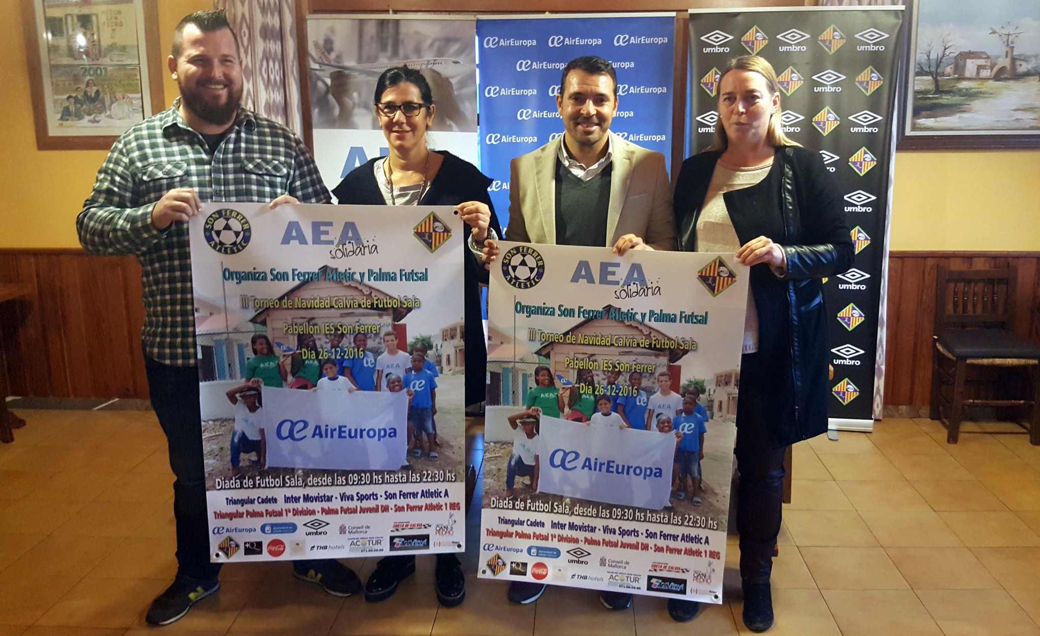 Este lunes se ha presentado el III Torneo de Navidad de Calvià de Fútbol Sala que tendrá lugar el próximo lunes 26 de diciembre en una jornada festiva en la que el protagonista será el fútbol sala en la localidad de Son Ferrer, en Calvià. Otro año más, el Palma Futsal ha organizado una jornada solidaria con un evento que crece cada año y que es todo un éxito de participación. Otro año más, la recaudación será a favor de la ONG AEA Solidaria, la ONG de Air Europa.