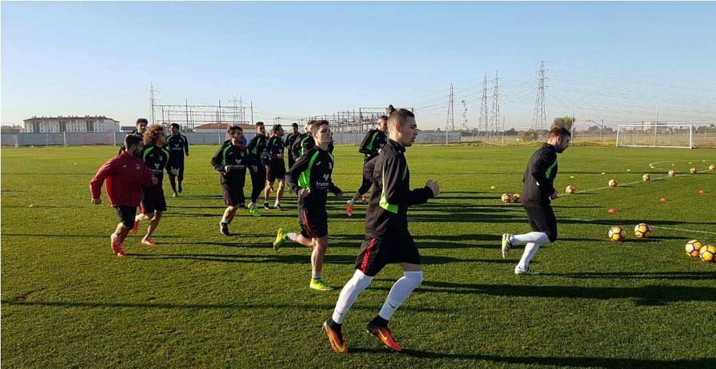 captura789Paco Natera El Formentera se encuentra en estos momentos realizando en la ciudad deportiva del Sevilla el único entrenamiento que ha previsto para preparar al partido de mañana miércoles y que le medirá al equipo de Jorge Sampaoli en el Ramón Sánchez Pizjuán a partir de las 19:00 horas. La sesión ha arrancado a las 10:00 horas y los jugadores de  Tito García Sanjuán están disfrutando de las magníficas instalaciones sevillistas. Sobre todo, del inmaculado césped natural del campo de fútbol.