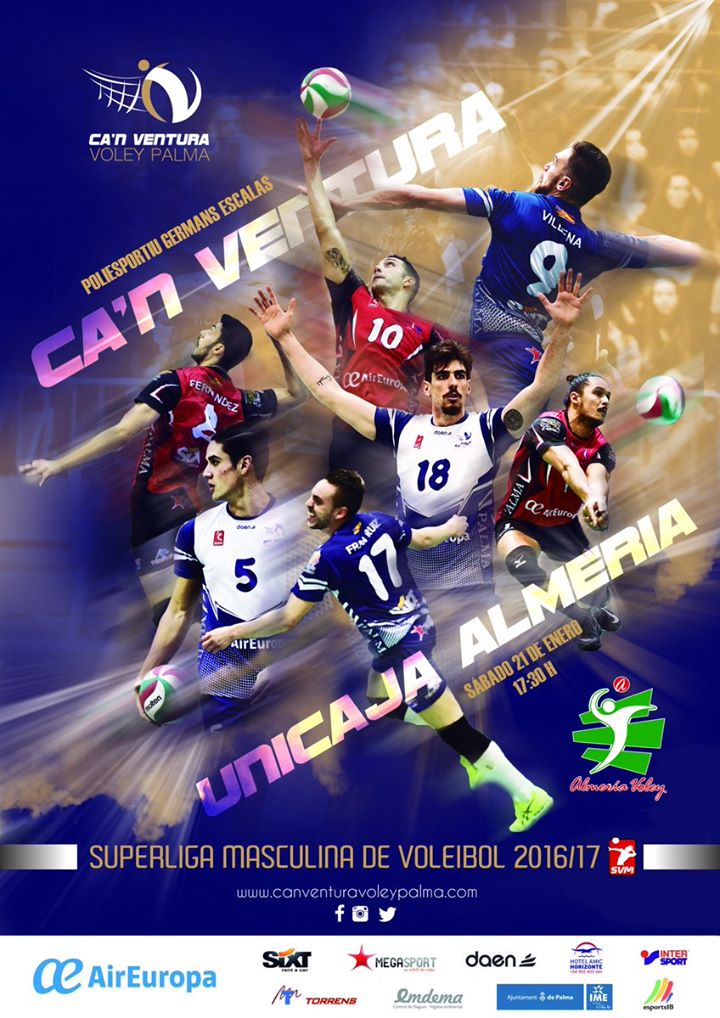 C.V. Ca’n Ventura Palma por su parte, viene de ganar en tierras cacereñas por 1-3, victoria que le ha servido para recuperar el segundo lugar en la clasificación. En el último enfrentamiento directo, disputado en Almeria el 22 de octubre del 2016, fueron los de Piero Molduci los que se llevaron la victoria por un 3-1 (25-22, 16-25, 29-27, 25-22). Esta vez la escena promete ser diferente, ya que los de Marcos Dreyer se encuentran mucho más rodados y consolidados como equipo que la última vez que se enfrentaron ambos equipos, y sobretodo por que esta vez el equipo balear contará con el inestimable apoyo de su afición, la que según el capitán Viciana y el propio Dreyer esperan «nos den ese plus que ayudan a ganar este tipo de partidos», dicen confiados de que su afición no les fallará y animará a su equipo hasta el final.