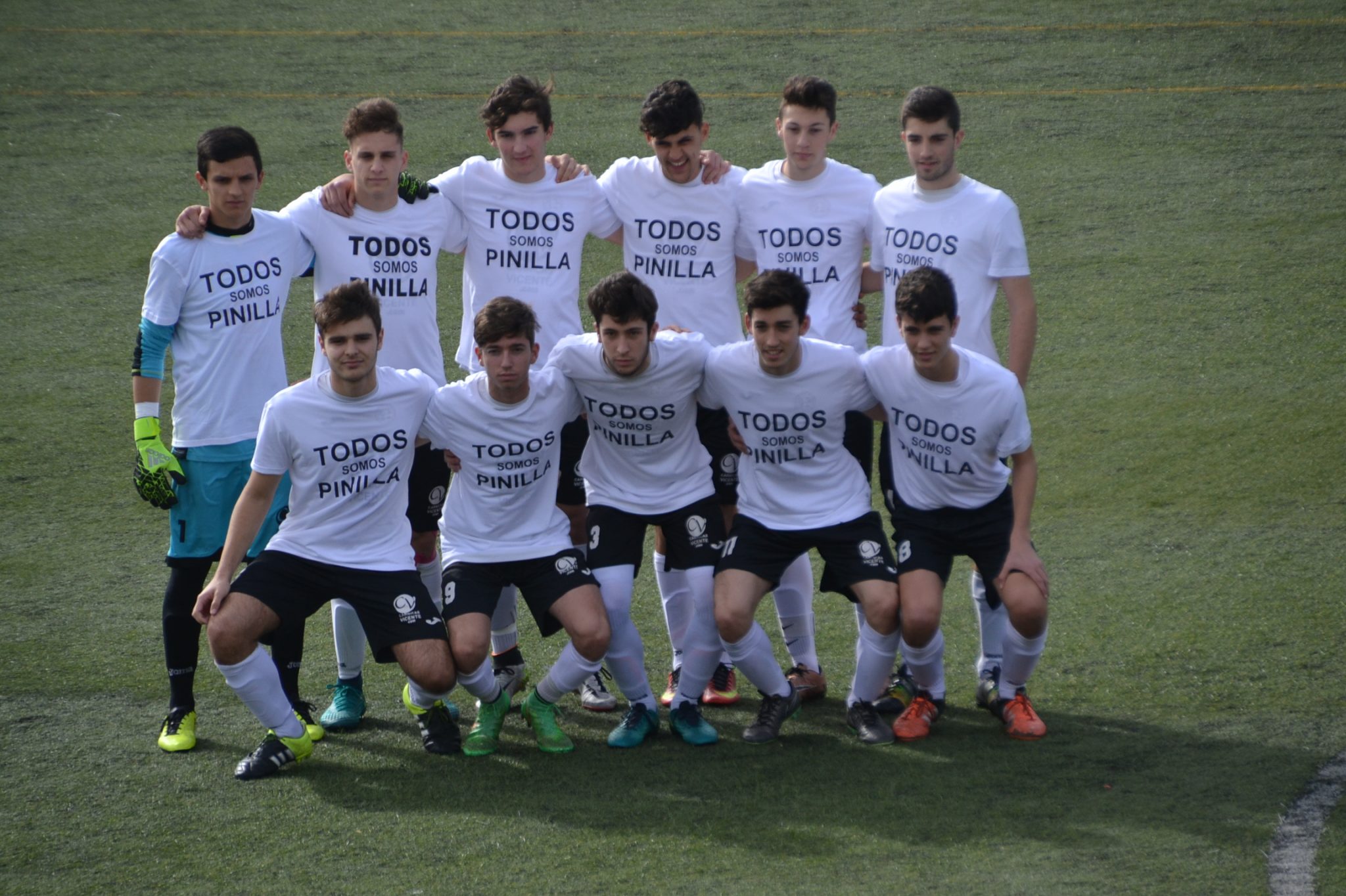 A destacar la camiseta que lucierón los jugadores locales antes de iniciarse el partido con el lema TODOS SOMOS PINILLA en clara alusión en que la plantilla esta con el mister al que ya se le ha comunicado (la verdad es que estamos en Febrero) que la temporada que viene no llevara el equipo de Liga Nacional Juvenil.