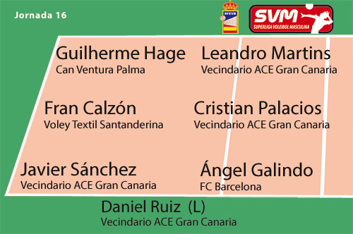 Infalible se mostró el jugador de Vecindario ACE Gran Canaria Leandro Martins en la ajustada victoria de su equipo sobre Voley Textil Santanderina. El «techo» de la liga anotó 30 puntos, con un gran porcentaje de aciertos del 43%, para erigirse en mejor atacante y máximo anotador de la jornada y apuntarse el MVP de la fecha 16 de SVM.Â