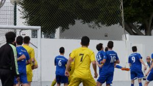 Els de Joan Moll, tot i portar per molts moments el pes del partit tot just arribaven amb perill a la porteria defensava per Antonio. Una rematada de cap de Dani Pons a la sortida d’un córner, era l’ocasió més clara per als blaugranes. Els nostres seguien incòmodes, imprecisos i una mica descol·locats en defensa, però seguin intentant de lluny posar a prova el porter Juanino. Primer va ser Eric Victory que o provava des de fora l’area pero el seu xut acaba a les mans del porter blaugrana. Poc després Adria Torres ho intentave però el seu xut es marxava fora. Quan semblava que el 0-0 portaria a tots dos al descans, una falta botada per Ivan Pons era picada amb el cap per Damia a la xarxa, era el minut 44 i els locals arribaven al descans amb l’avantatge mÃnima.