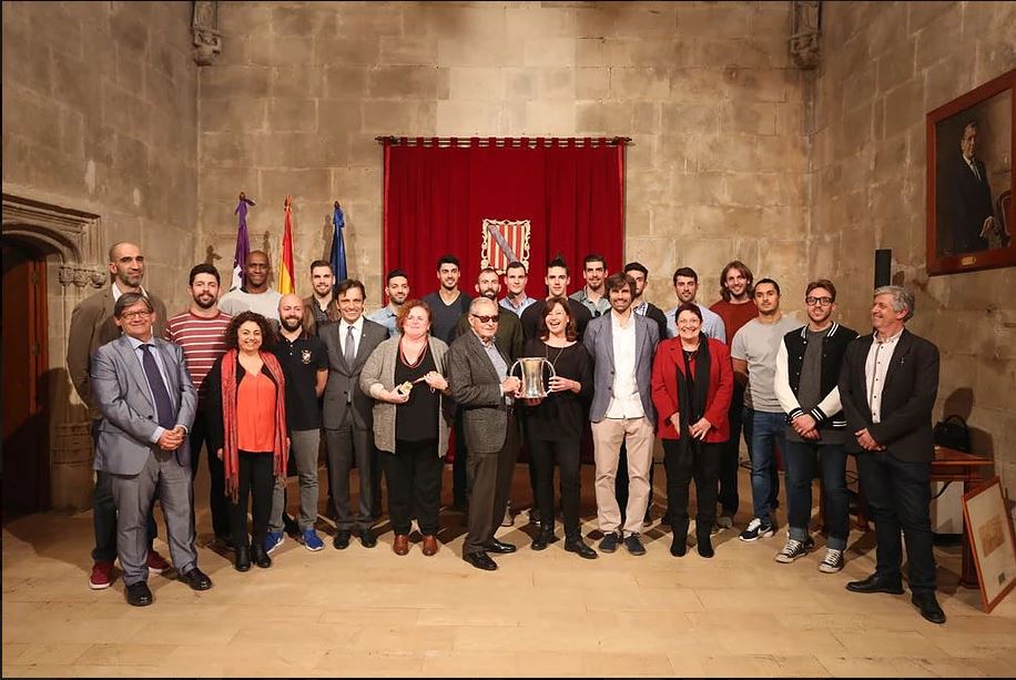Junto a la presidenta Armengol estaba la consellera Ruth Mateu, el vicepresidente del Consell de Mallorca, Francesc Miralles, el director general de deportes, Carles Gonyalons, la presidenta de la Federación Balear de Voleibol, Dolors Besné, así como el gerente de la Fundació per a l’Esport Balear, Joan Noguera. Por parte del equipo campeón de Copa, encabezaba el grupo su presidente Damián Seguí, junto al entrenador brasileño del equipo, Marcos Dreyer, y la totalidad de la plantilla del equipo mallorquín.
