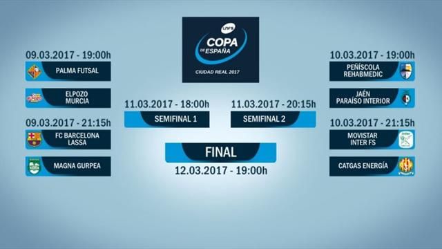 ElPozo Murcia se medirá al Magna Gurpea y el Jaén ParaÃso Interior al Movistar Inter en las semifinales de la Copa de España que se disputarán este sábado en el Quijote Arena de Ciudad Real. La final el Domingo 19,00 hrs TDP