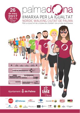 L’Institut Municipal de l’Esport de l’Ajuntament de Palma organitza el pròxim diumenge 26 de març la Marxa per la Igualtat – Nordic Walking Ciutat de Palma, dins el programa general de PALMADONA. Es tracta d’una marxa de carà cter popular, per a la qual no és necessari dur bastons, ja que es tracta de fer una passejada per a fomentar el dret de la dona cap a l’esport, per la igualtat de gènere. És una vertadera caminada i no una competició de carà cter esportiu. El recorregut proposat es presenta amb tres nivells de distà ncia perquè cadascú s’hi posi la seva fita, i caminant faci esport saludable, alhora que camini cap a la Igualtat entre dones i homes. Els qui vulguin podran utilitzar els bastons per a practicar la modalitat de marxa nòrdica (nordic walking), encara que l’ús d’aquest material no hi és obligatori. És una modalitat esportiva que, a nivell de les Illes Balears, està integrada en la Federació Balear de Muntanyisme i que es caracteritza per ser una activitat accessible per a tothom, molt saludable i amb un component de foment de les relacions socials i la integració de gran importà ncia, i sense requeriments de grans instal·lacions esportives per a practicar-la.
