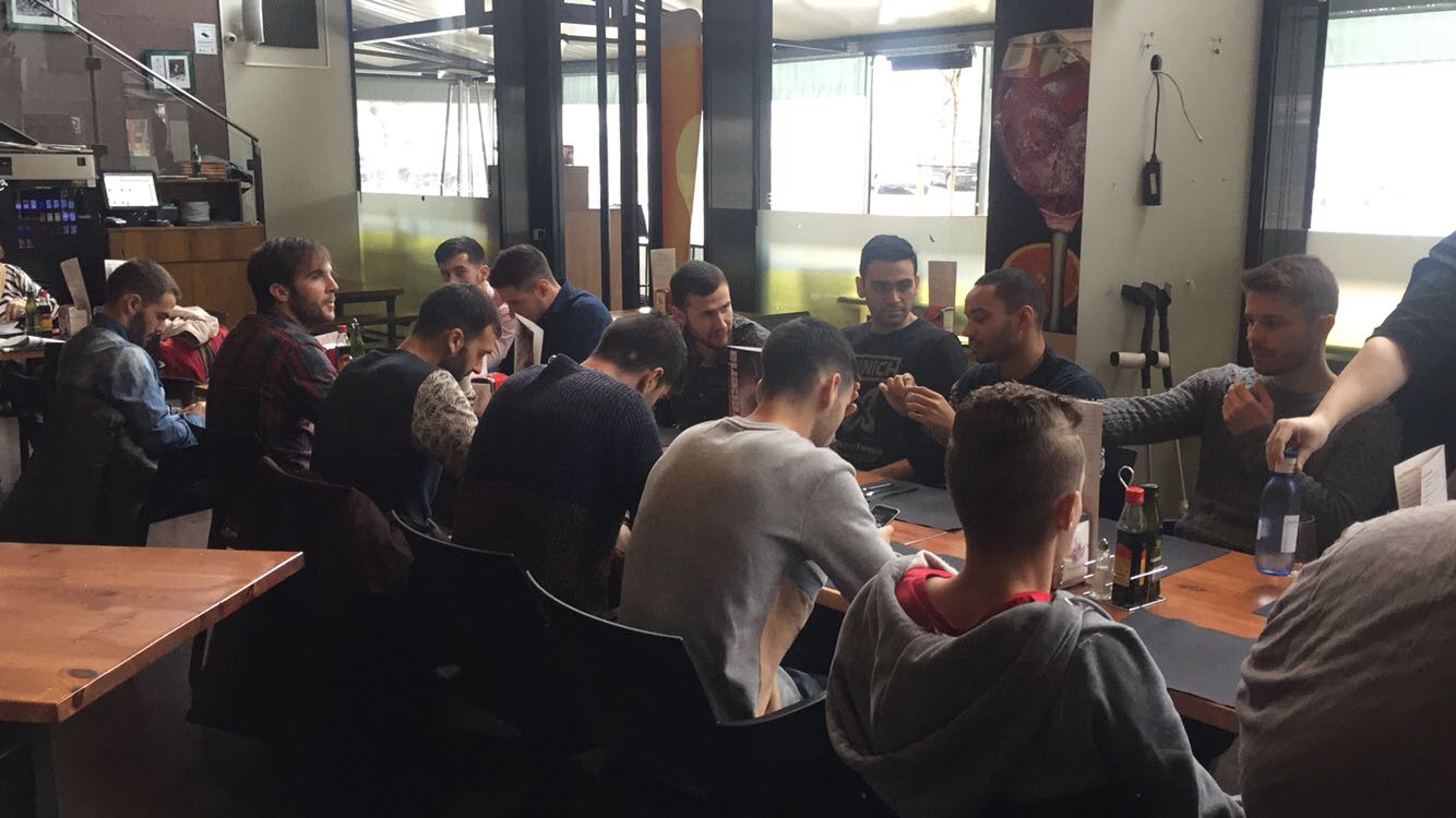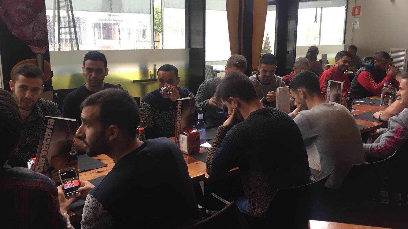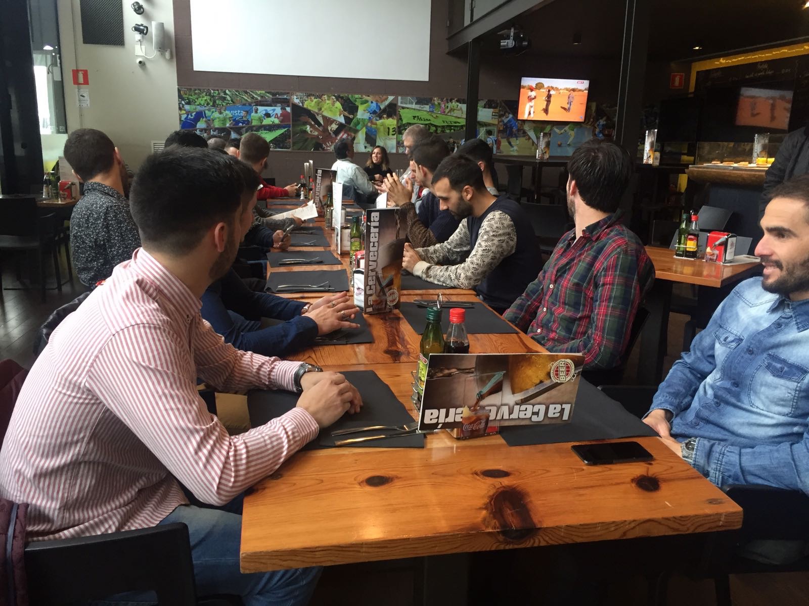 La plantilla del Palma Futsal ultima los preparativos para afrontar el partido del domingo ante el F.C. Barcelona Lassa con el objetivo de abrazar un triunfo que les acerque al objetivo de alcanzar la cuarta plaza. El equipo afronta un calendario exigente para finalizar la temporada y que comienza con el partido ante el F.C. Barcelona de este domingo y al que seguirán dos rivales directos como son el Jaén Paraíso Interior y el Peñíscola RehabMedic. La plantilla al completo y el cuerpo técnico han aprovechado este viernes para compartir un almuerzo para hacer piña de cara a lo que se avecina. El almuerzo ha tenido lugar en “La Cervecería”, uno de los restaurantes colaboradores con la entidad y que ha aprovechado la visita para presentar un espacio físico que dedica al Palma Futsal con imágenes de la plantilla.
