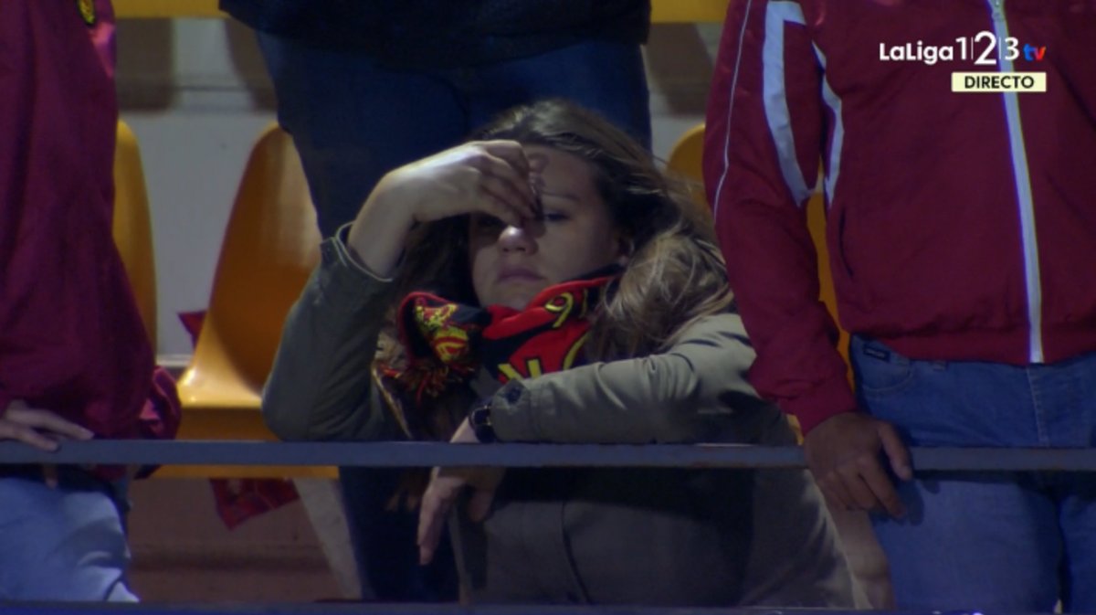 Esta foto de una aficionada ayer en Santo Domingo resume el sentimiento generalizado de todo el mallorquinismo. El equipo parece abocado al descenso a Segunda B, el peor escenario de las cuatro últimas décadas porque significa salir de la órbita del fútbol profesional español.