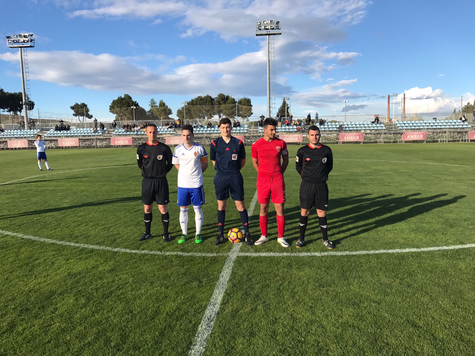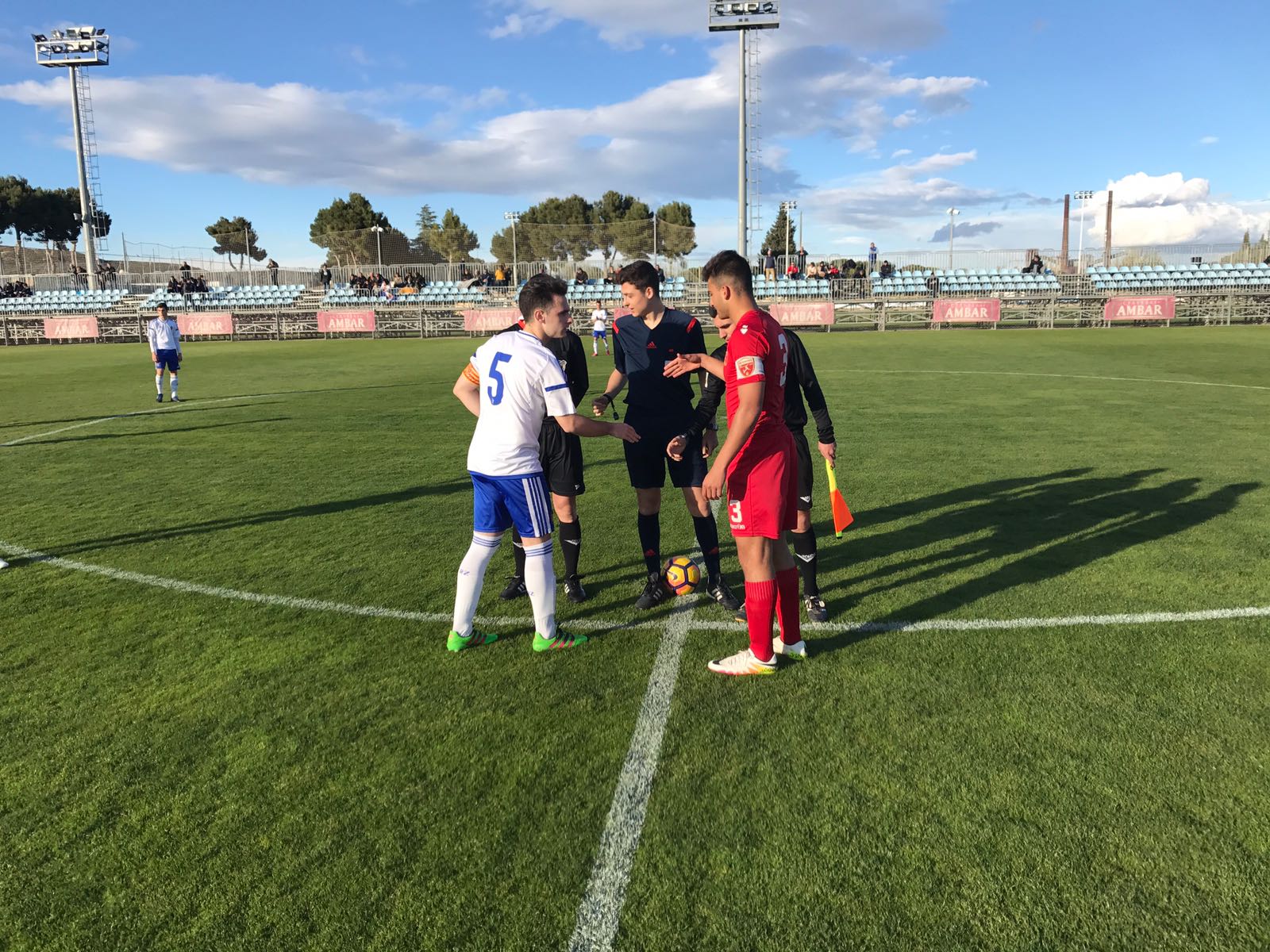 Trepidante primera parte en la que el conjunto local salÃa más enchufado y tenÃa 15′ muy buenos pero en los que el CD San Francisco sabÃa defenderse y sufrir. No concedÃa ocasiones, algún tiro lejano pero que no iban entre los tres palos pero con mucha combinación en banda, especialmente si izquierda. Sus mejores hombres, Baselga y Garde, asistÃan a Tresaco, muy activo y si no conseguÃan sacar provecho, el potente Nick, echaba el resto. Por su parte, el conjunto de Carlos Muñoz se asentaba en el campo y comenzaba a generar ocasiones y a vivir en campo rival. Se hizo dueño y señor y gozó de las mejores ocasiones: Trapero en un mano a mano que lamió el palo y Fran con un gran remate de cabeza en un córner,  pudieron abrir el marcador haciendo justicia al buen juego alegre de los franciscanos. Y podrÃa haber sido peor para los intereses locales si el árbitro hubiese expulsado al central Javi Pérez que, teniendo una tarjeta, agarró a Trapero cuando se volvÃa a quedar solo ante el meta Azón.