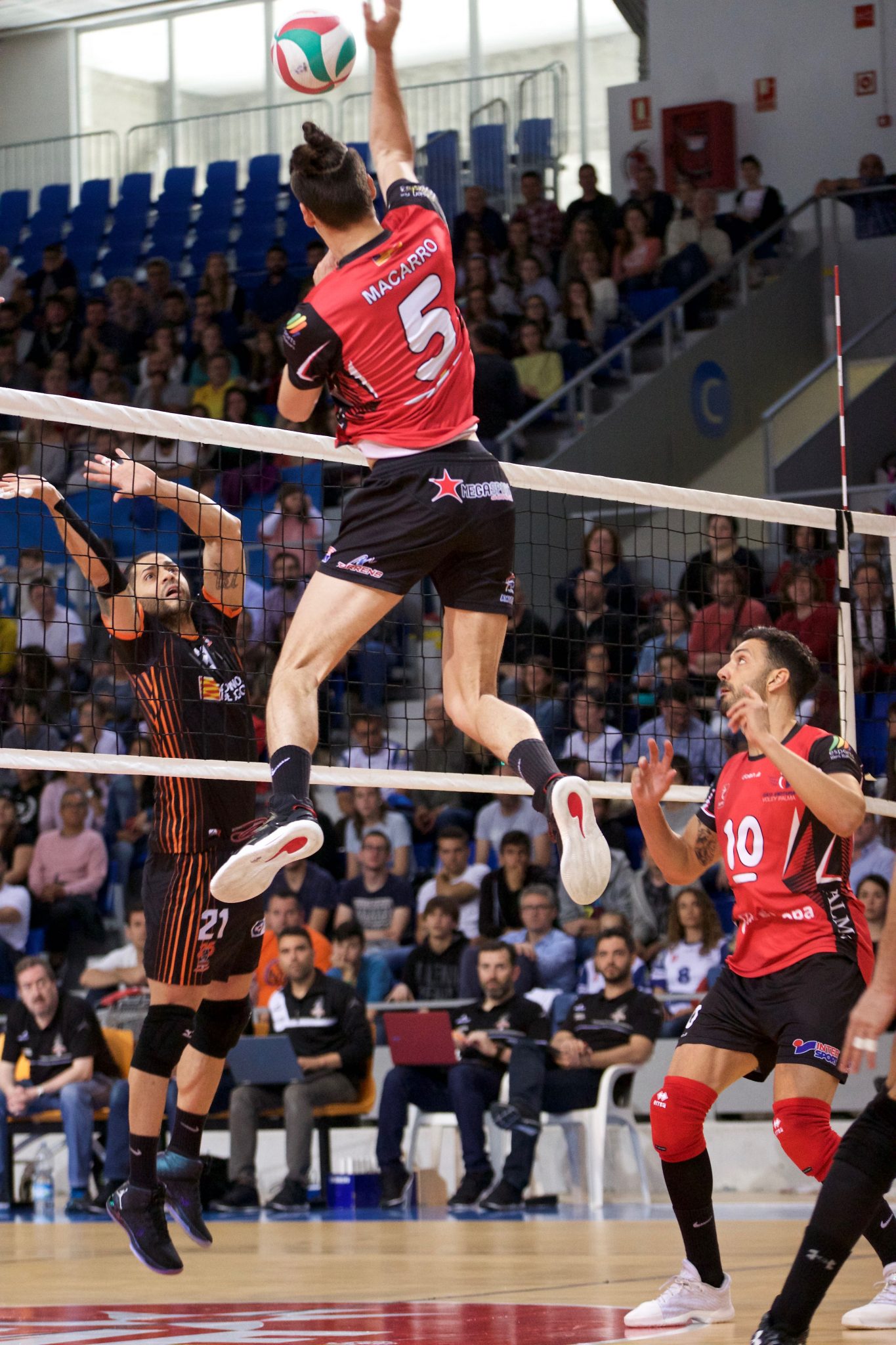 De nuevo la emoción y la igualdad estuvo presente en el inicio del encuentro. En la primera manga los puntos fueron sucediéndose, con un Teruel arriesgando en el saque y mantenÃendose en el juego gracias al buen trabajo en bloqueo. Los hombres de Marcos Dreyer conseguÃan contrarrestar a los naranjas gracias a sus magnÃficos saques, destacando nuevamente Jorge Fernández en esta faceta, quién volvió a anotar cuatro saques directos a lo largo de todo el partido. Ambos equipos no conseguÃan despegarse en el electrónico hasta llegar al 23-23, donde un enorme Fran Ruiz, con un punto de ataque y un saque directo, decidió resolver el primer set a favor de Ca’n Ventura, colocando el 25-23.