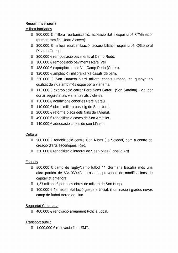 Empezamos con la reforma del campo de fútbol de Verge de Lluc, destinando 100.000 euros a la primera fase. Es un campo de fútbol municipal que está abandonado desde hace años y que el barrio nos pidió que lo pusiésemos en funcionamiento para los niños y niñas..