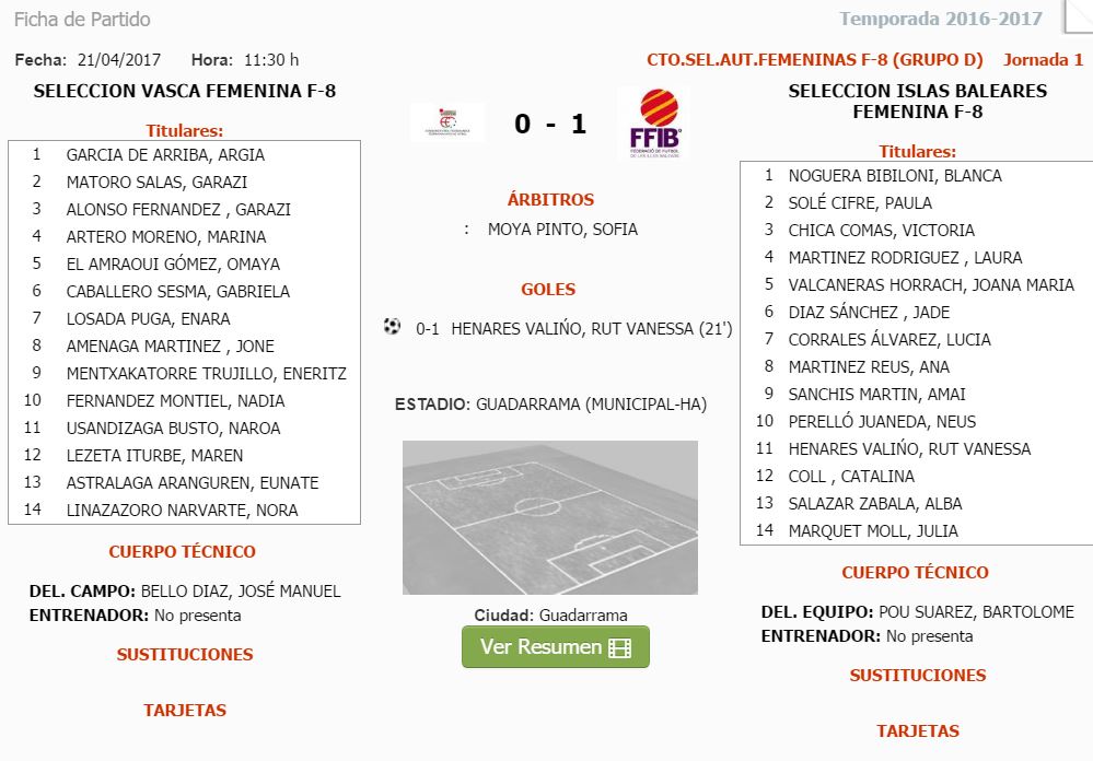 Partido No 07 – D – 11:30 horas – VASCA / ILLES BALEARS  (1-0)