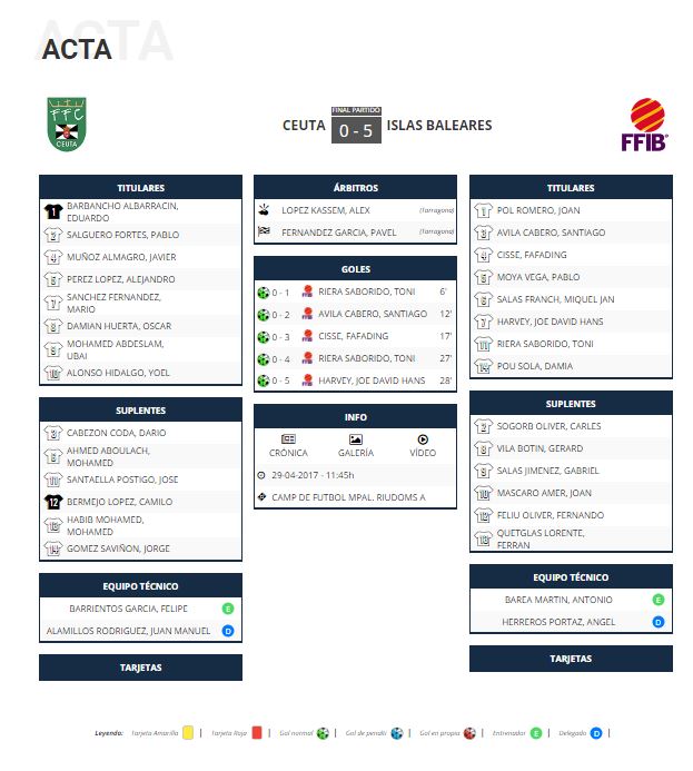 Las Selecciones de Ceuta e Islas Baleares se han enfrentado en un partido sin trascendencia puesto que ambas selecciones ya no se podían clasificar para los cuartos de final al no haber conseguido puntos y sólo uno, respectivamente. Aún y así, ambas selecciones han saltado al terreno de juego con ganas de dominar el partido y de poder llevarse la victoria. Sin embargo, la única afortunada en la primera parte ha sido la Selección de las Baleares. En el minuto 6, Toni Riera ha rematado bajo los tres palos un mal rechace del portero ceutí; y sólo siete minutos después, Santiago Avila, ha enviado el balón al fondo de la red con un potente disparo desde el lateral del área que ha hecho entrar por la escuadra del segundo poste.