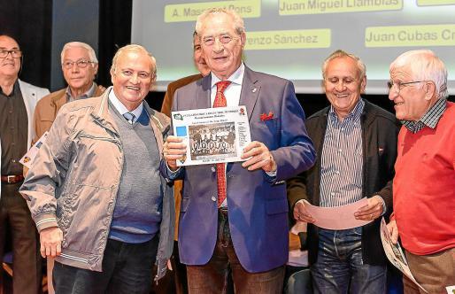 Después fue el turno para los futbolistas revelantes e históricos de las temporadas 1960-65, del CD Menorca, UD Mahón, CD Alayor y Atlético Ciudadela. Los históricos fueron por parte del Menorca, Vistre Mundo, por parte de la Unión Juan Miguel LlambÃas, del Alaior Juan Pons ‘Fletxa’, y por parte del Atlètic, Pedro Prats. Tomaron el relevo los entrenadores del mismo lustro y fue proclamado como histórico, el técnico ciutadellenc Pancho Marqués. El premio al árbitro histórico fue para Cristóbal SeguÃ, y los directivos finalistas fueron José Mª Escudero del Menorca, Bernardo Seguà de la Unión, Juan Barber del Alaior y Antonio Pons del Atlètic de Ciutadella. El recordado equipo de la Unión que fue campeón de Tercera División en las temporadas 65/66 y 66/67 también fue homenajeado con algunos de sus asistentes que fueron agasajados. El club gualdiazul disputó ante el Jerez Industrial en 1966 y la temporada siguiente ante la SD Eibar la promoción de ascenso a la Segunda División (perdió ambas). Estuvieron presentes en el acto directivos de ambos clubes desplazados desde sus localidades de origen. La AHFM se hermanó con ambas entidades.