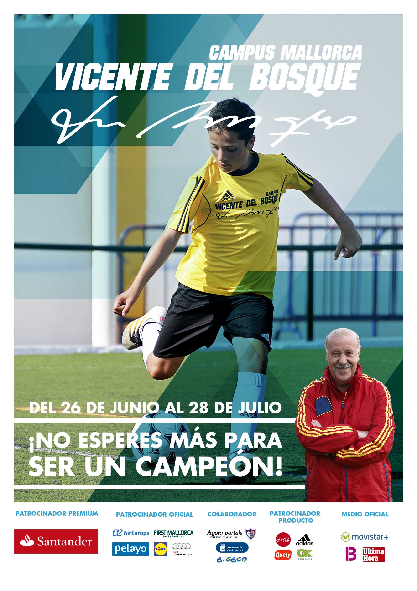 Después del éxito cosechado en los últimos 5 años con más de 5.000 niños y niñas bajo la supervisión de  Don Vicente Del Bosque en este gran proyecto de presente y de futuro confirma su presencia en el mes de Julio para compartir una jornada con todos los participantes del campus.