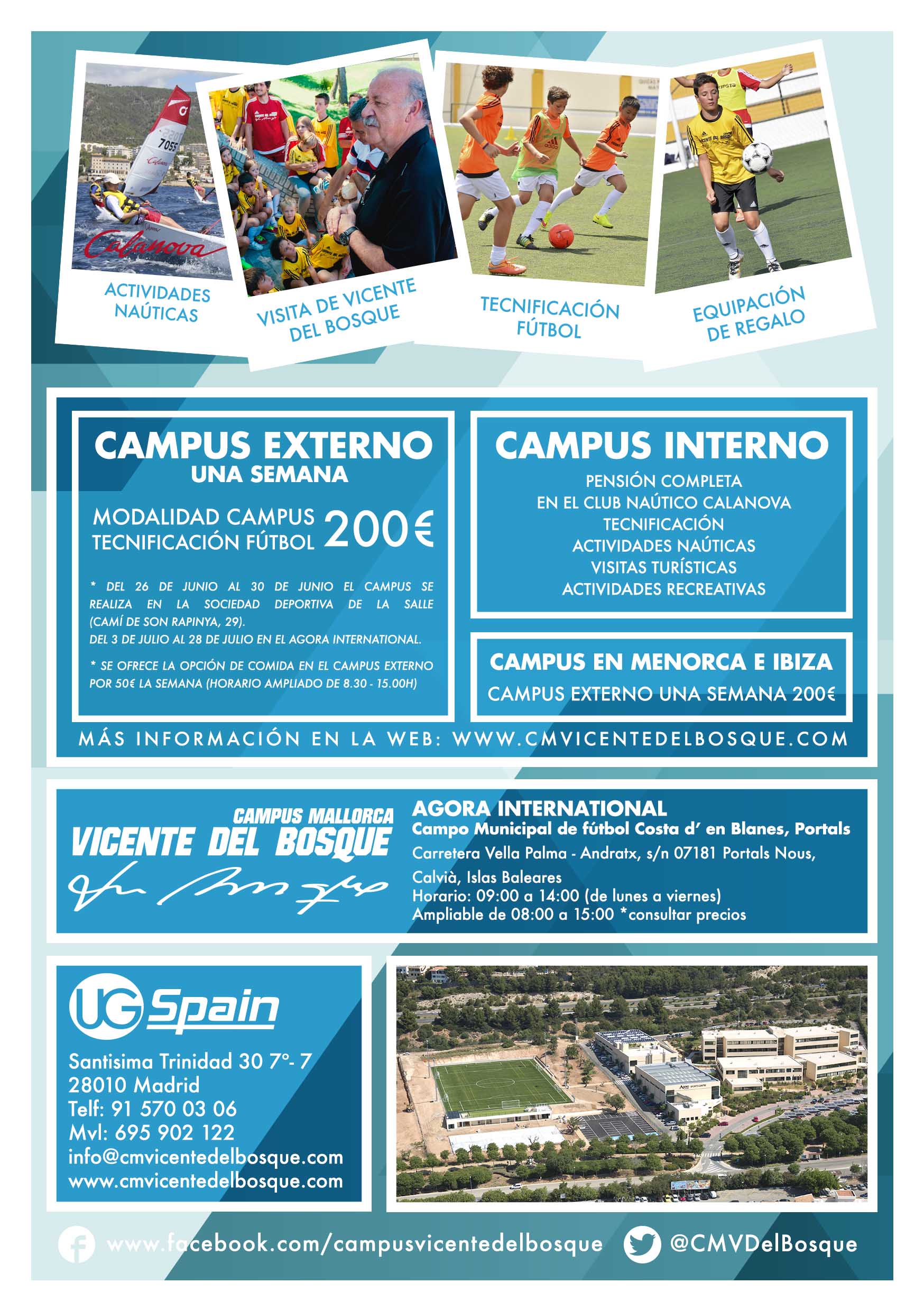 El Campus Vicente Del Bosque se desarrollará entre el 26 de Junio y  el 28 de Julio y acogerá a más de 1.000 niños y niñas entre 6 y 17 años. El acto contó con la presencia del ex seleccionador Nacional y campeón del mundo Don Vicente del Bosque, los sponsors oficiales, prensa deportiva y el director técnico del Campus, Pau Albertí.