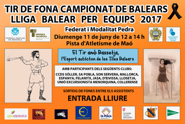La Federacion Balear de Tir de Fona, con el patrocinio del Govern Balear, el el Ayuntamiento de Mahón, la Conselleria de Cultura de Menorca y El Corte Ingles, ha organizado junto al Club Unio Excursionista Menorquina, la III Jornada de la LLiga Balear, el XV Campionat de Balears per equips de Tir de Fona 2017, celebrada el dia 11 de junio de 2017, en las pistas de atletismo del poliesportiu de Mahón, entre las 12 y 15 H