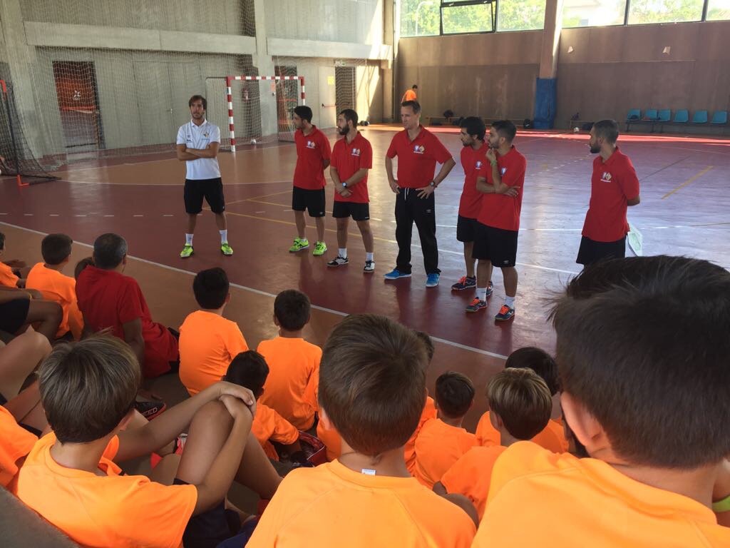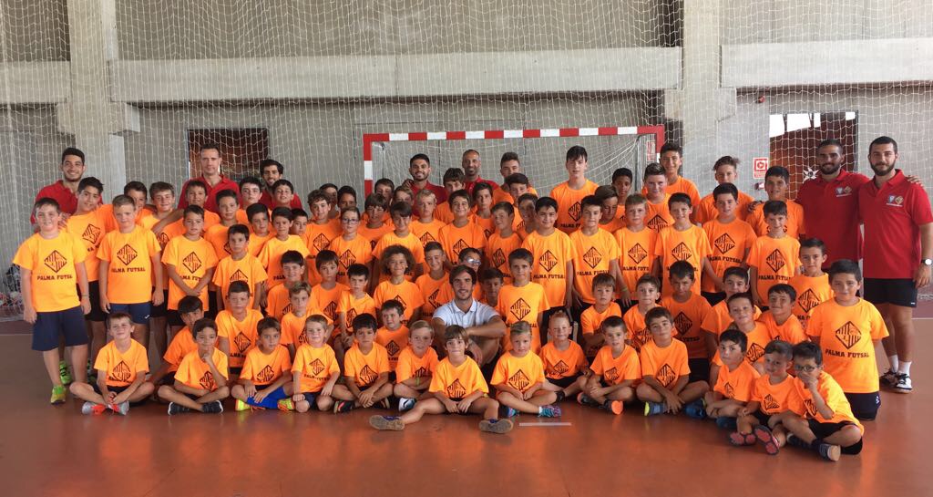 Carlos Barrón en el campus del Palma Futsal en Palma. El meta ha compartido hoy la experiencia con Antonio Vadillo y Chicho, entre otros.