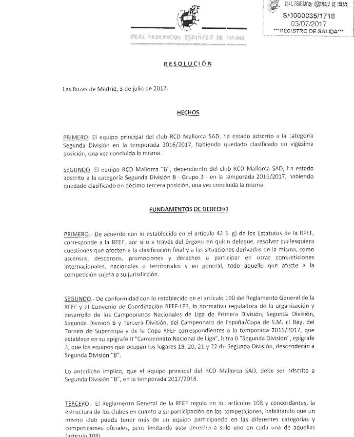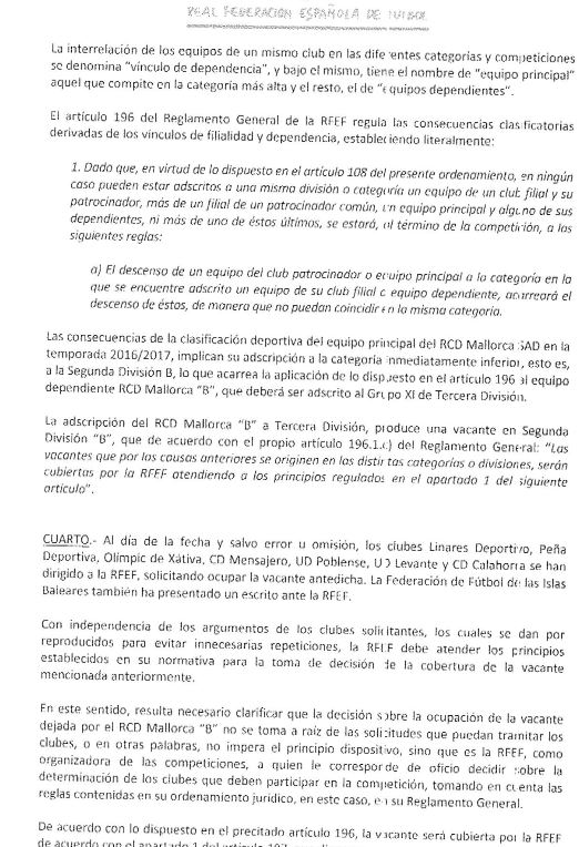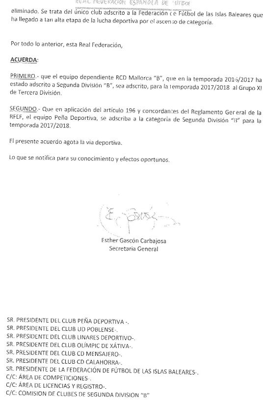 Segunda-BLa RFEF acaba de hacer publico un comunicado en cuanto a la resolución tomada por los Organos Juridicos sobre la Plaza otorgara a la Peña Deportiva