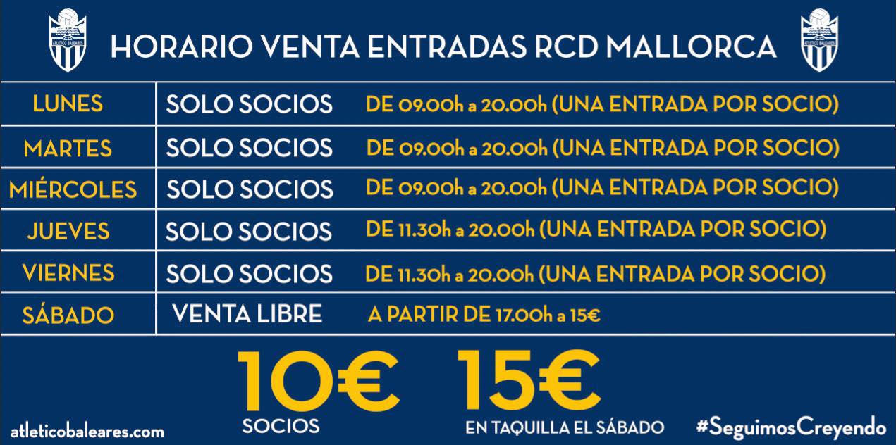 Sabado en Son Malferit (19,00 Hrs), la venta de Entradas para los socios se hara hasta que se agoten