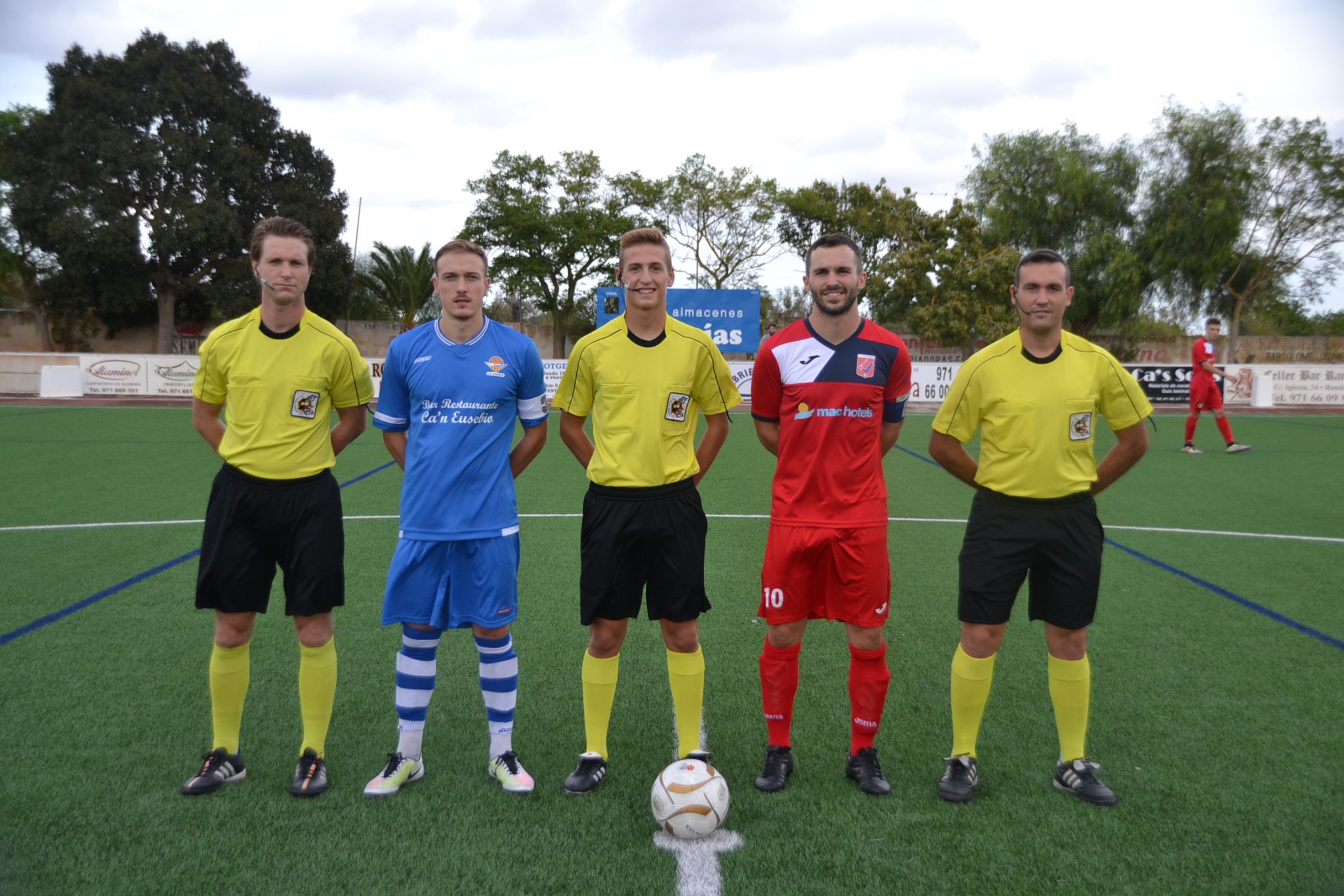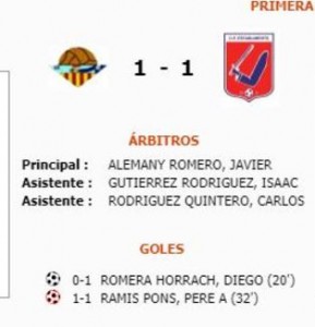 En el minuto 20 se adelanto el establiments (Diego Romera) mejor situado sobre el terreno de juego ante un equipo local muy nervioso para en el minuto 32 los locales ante una imprecisión visitante marcar el gol del empate por Pere Antoni Ramis, el mismo jugador en el minuto 42 daba el susto del partido  al caer brutalmente al suelo con la cabeza tras una jugada fortuita con un jugador contrario, en estos momentos saltarón todas las alarmas y cundio el nerviosismo,  después de varios y eternos minutos el jugador se fue incorporando pero se llamo una ambulancia que se lo llevo hacia el Hospital quedando en observación.