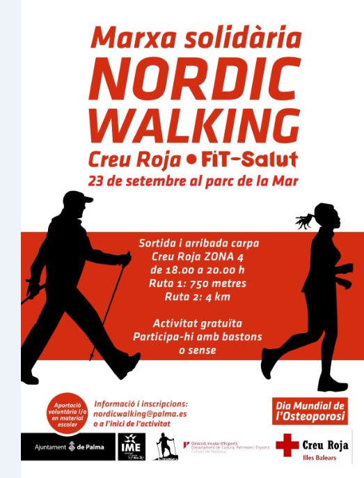 Emmarcat dins la Fit Salut Palma 2017,  l’Institut Municipal de l’Esport organitza La Marxa solidà ria Nordic Walking Creu Roja, que tindrà lloc a la zona 4, de 18 a 20 h, amb dues propostes: una ruta de 750 m i una altra de 4 km. S’hi pot participar amb bastons o sense. És un esdeveniment gratuït; però els participants hi poden fer aportacions voluntà ries o material escolar a benefici de Creu Roja