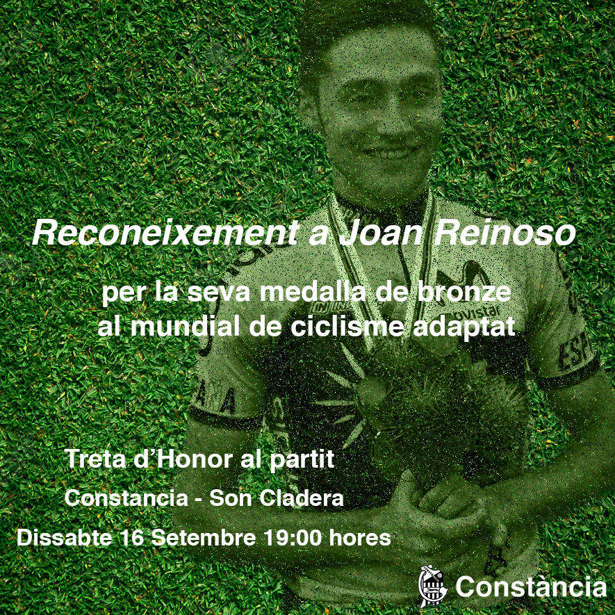 No es el momento para recordar todo el palmarés acumulado durante estos años por Joan Reinoso después de su fatídico accidente y posterior recuperación, pero desde el Club Esportiu Constància de Inca quieren reconocer la última medalla de bronce conseguida recientemente en los mundiales de Sudáfrica en ciclismo adaptado.