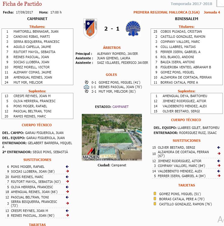 Primera Regional ; Campanet – Binisalem-B (2-1) Galeria de fotos