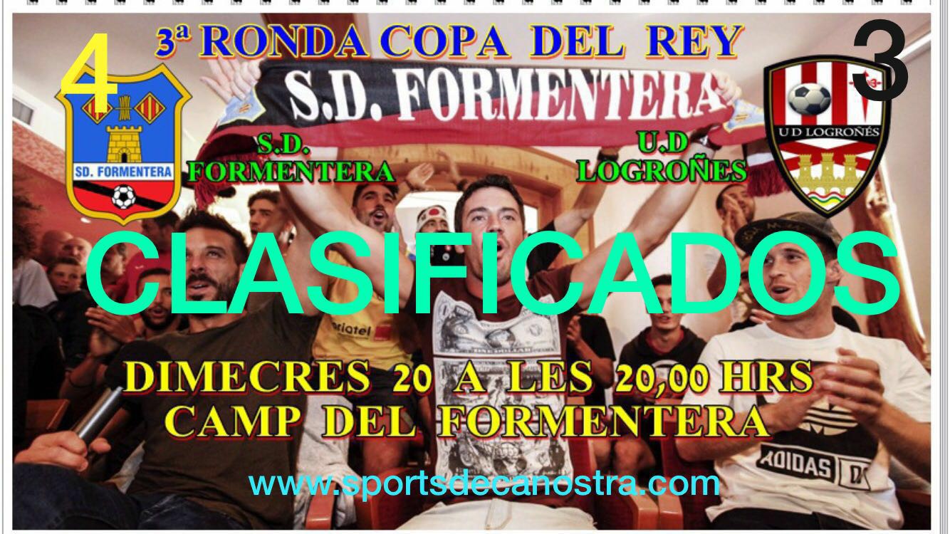 @futbolpitiuso El Formentera sigue empeñando en hacer historia en la Copa del Rey. El equipo de Tito García Sanjuán se ha clasificado para 1/16 de final por segunda temporada consecutiva después de eliminar al Logroñés en una noche mágica, épica, con una remontada de leyenda. Los rojinegros, que iban perdiendo 0-2 en el minuto 70, igualaron la contienda en los últimos minutos del tiempo reglamentado gracias a los goles de Bruno Vinicius (m. 80) y Fobi (m. 86), forzando la prórroga para alegría de la fiel hinchada formenterense, que llenó el pequeño coliseo de la Pitiusa menor. En el 95 fue Dailos quien desató la locura en la grada con el 3-2, aunque el conjunto riojano igualó el choque con un tanto de Muneta en el minuto 100. Pese al mazazo, el Formentera sigó creyendo en sí mismo y Gabri, en el 107, estableció el definitivo 4-3, resultado que permite al Formentera continuar vivo en el torneo del KO y poder enfrentarse de nuevo a un grande del fútbol español, como el Real Madrid o el Barça.
